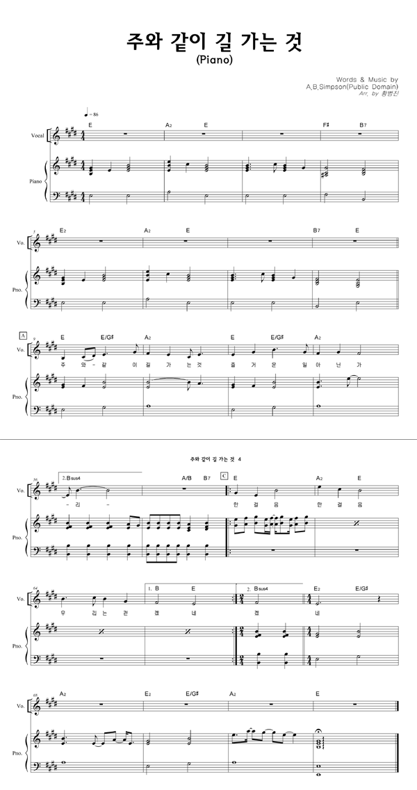 '주와 같이 길 가는 것 (이규헌 편곡)' 의 다른 악보형식