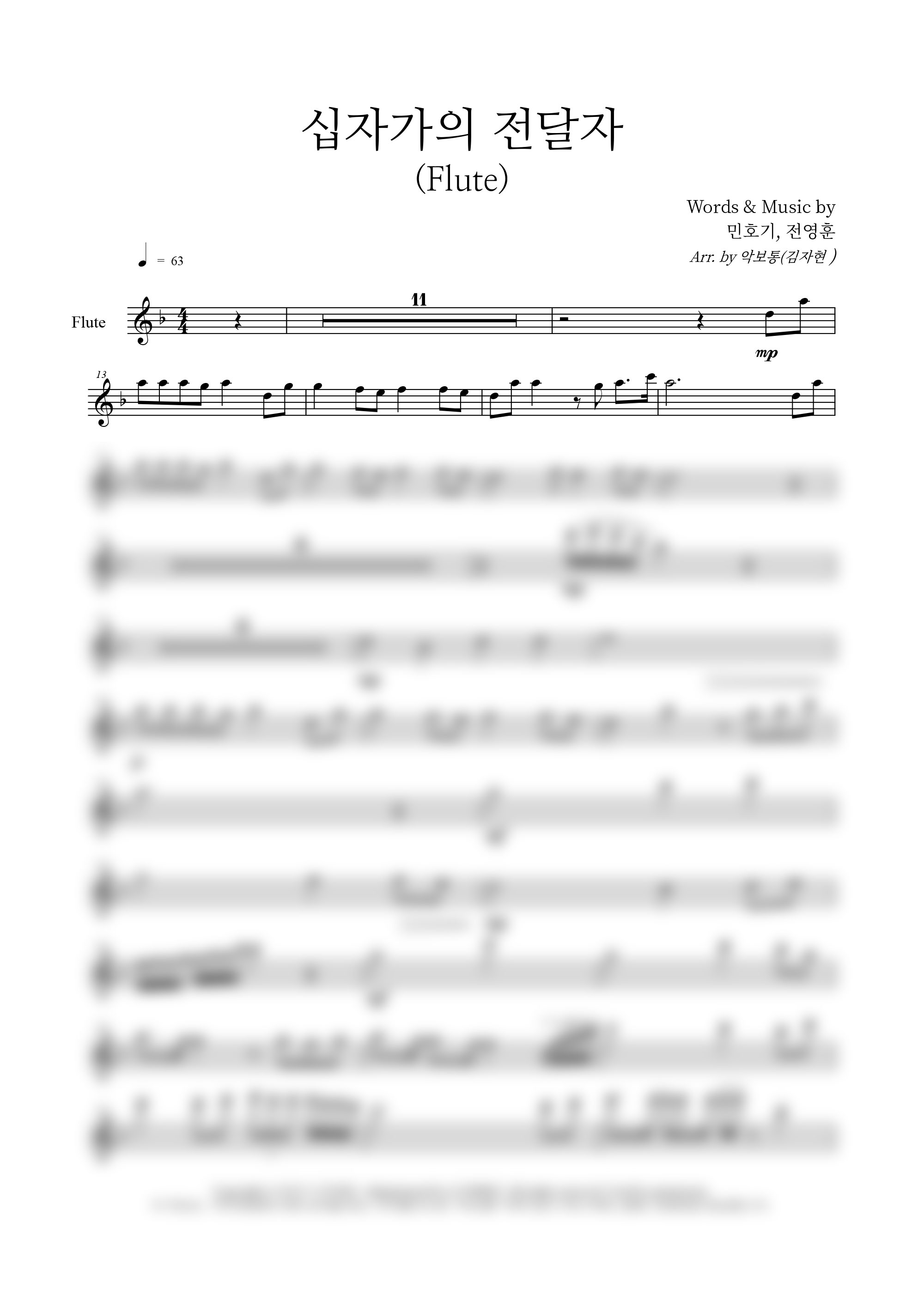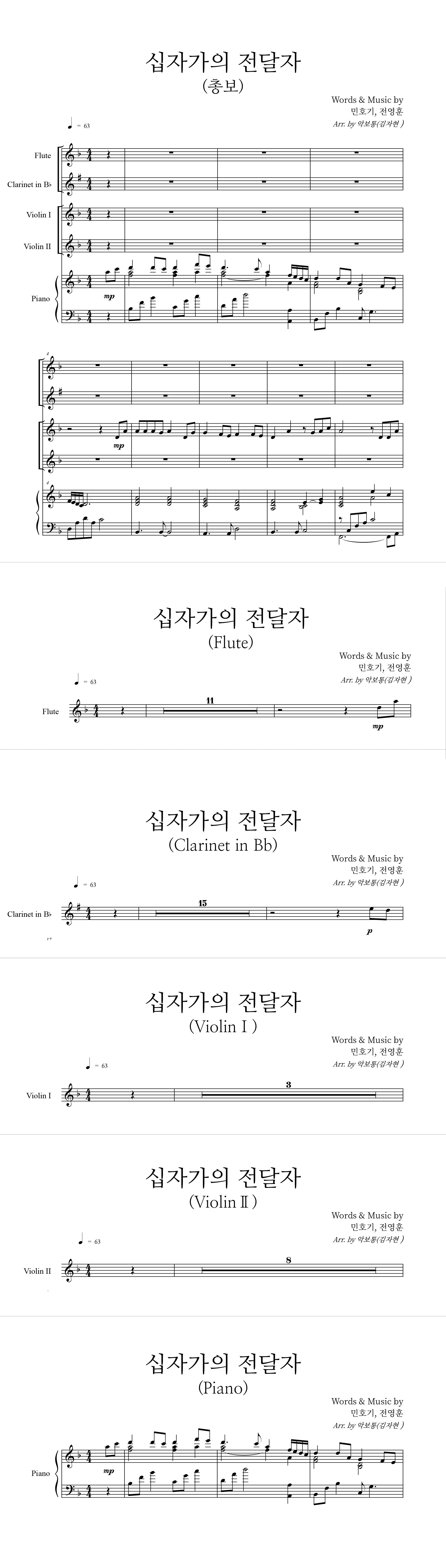 '십자가의 전달자' 의 다른 악보형식