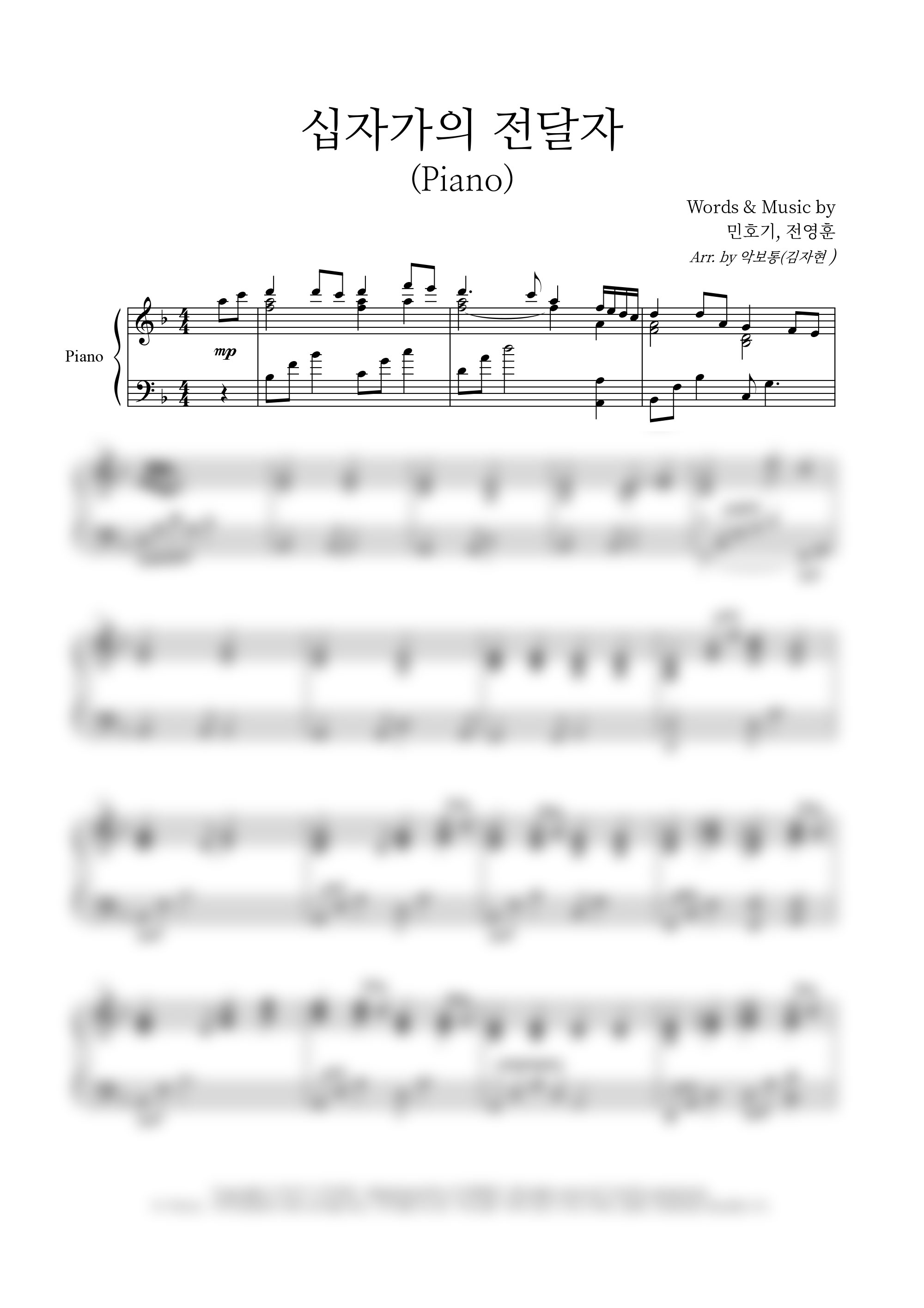 | 십자가의 전달자 | 성가 2부 + 피아노 반주 |