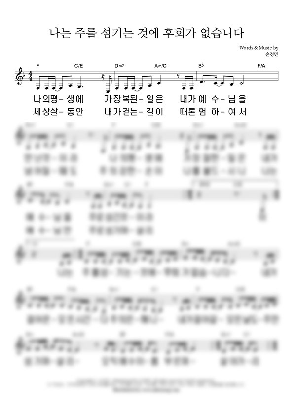 | 나는 주를 섬기는 것에 후회가 없습니다 | 성가 4부 + 피아노 반주 |