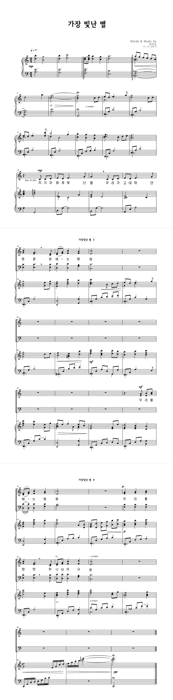 | 가장 빛난 별 | 성가 2부 + 피아노 반주 |