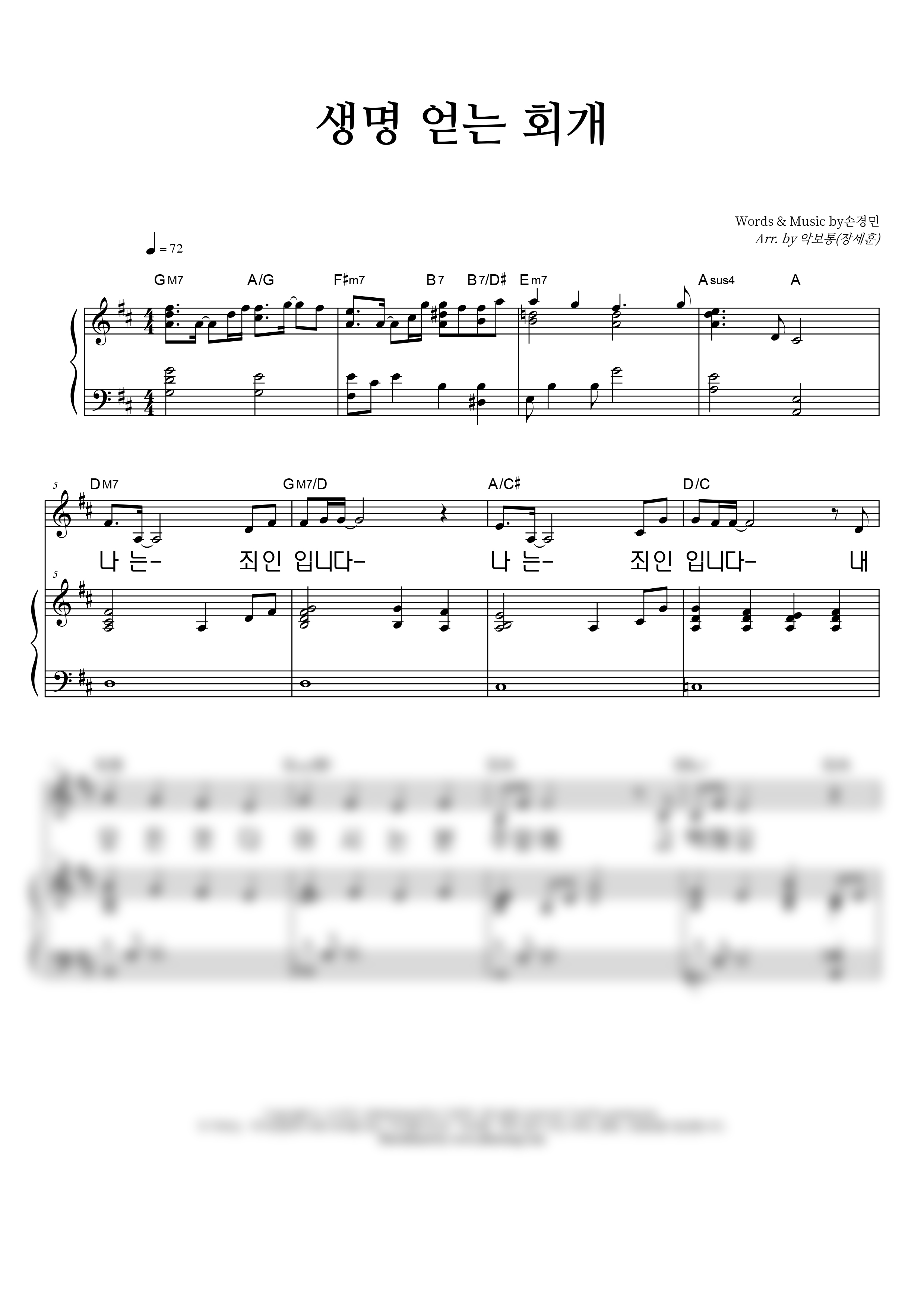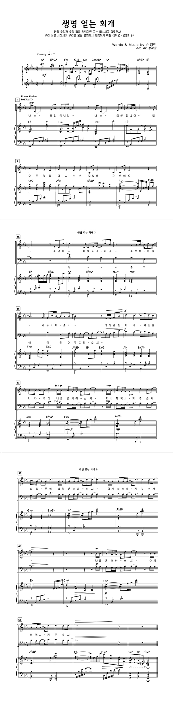 | 생명 얻는 회개 | 성가 3부 + 피아노 반주 |