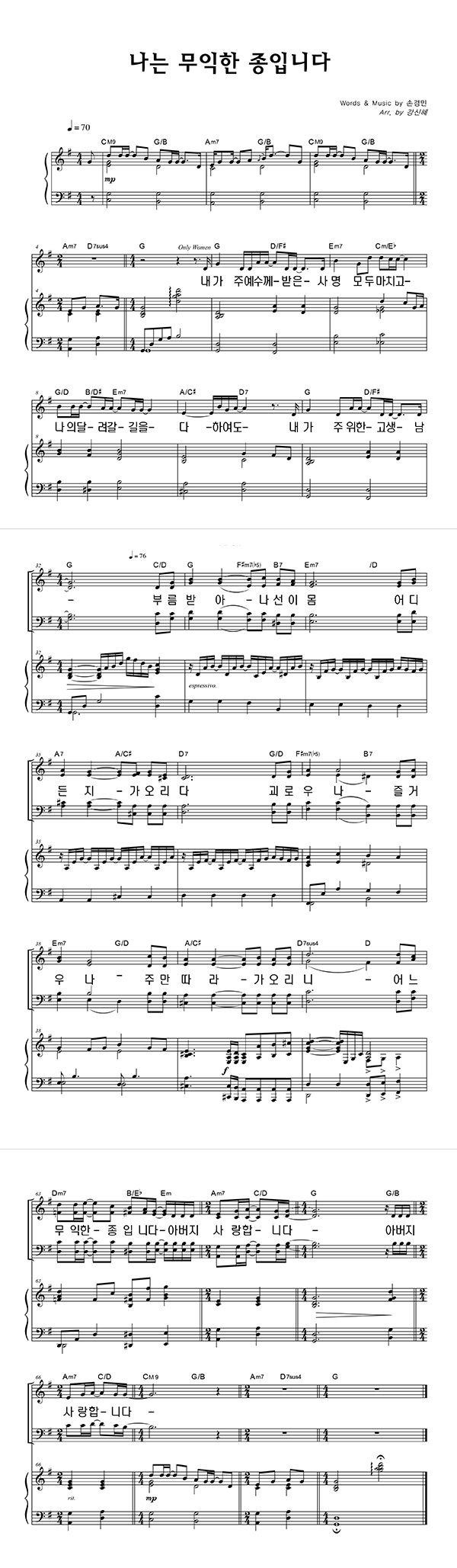 | 나는 무익한 종입니다 | 성가 2부 + 피아노 반주 |