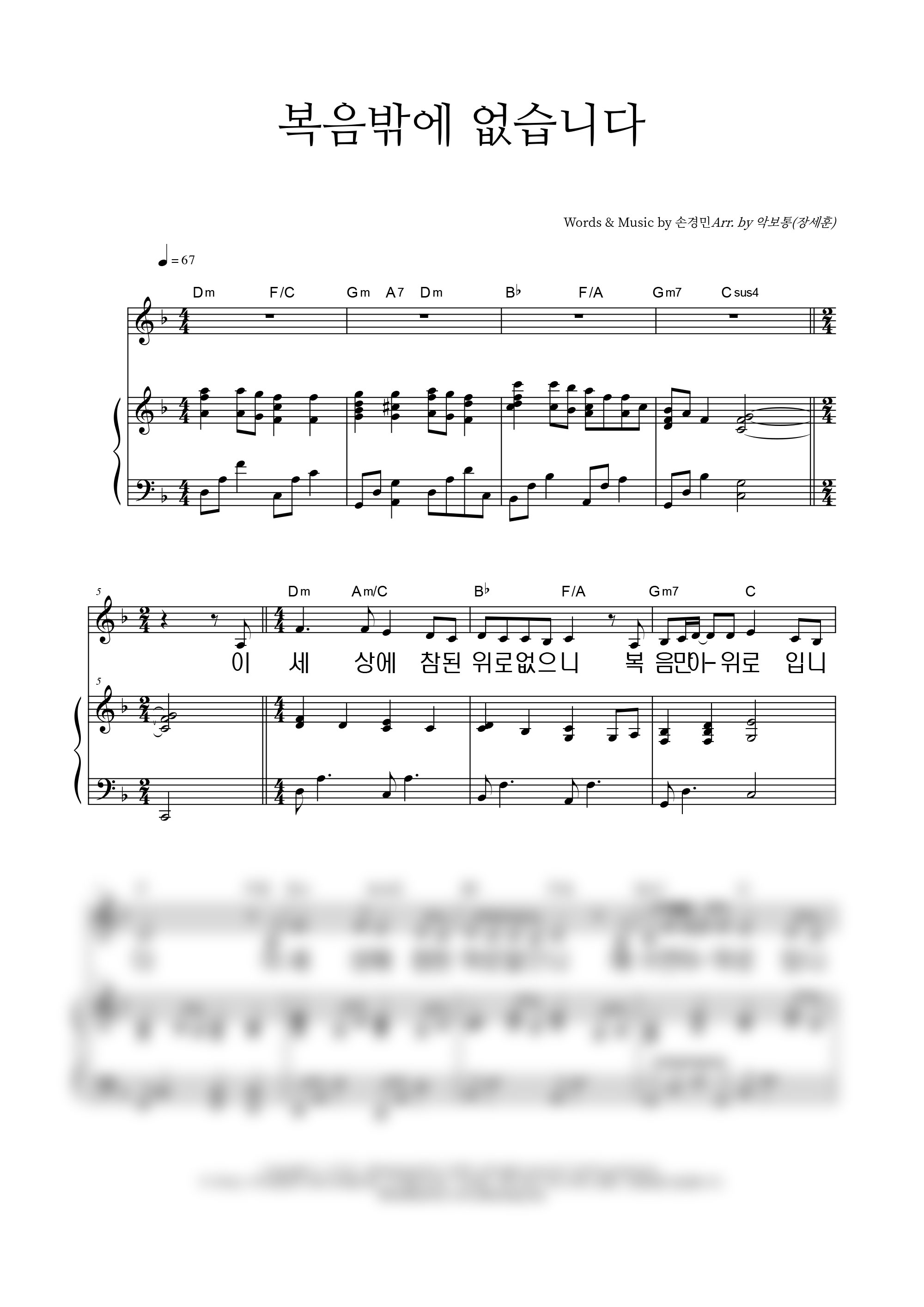 | 복음밖에 없습니다 | 성가 2부 + 피아노 반주 |