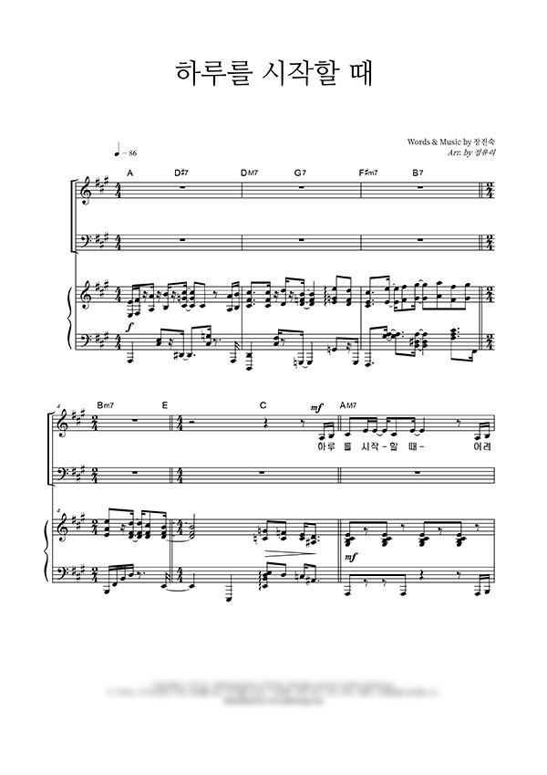 | 하루를 시작할 때 | 성가 3부 + 피아노 반주 |