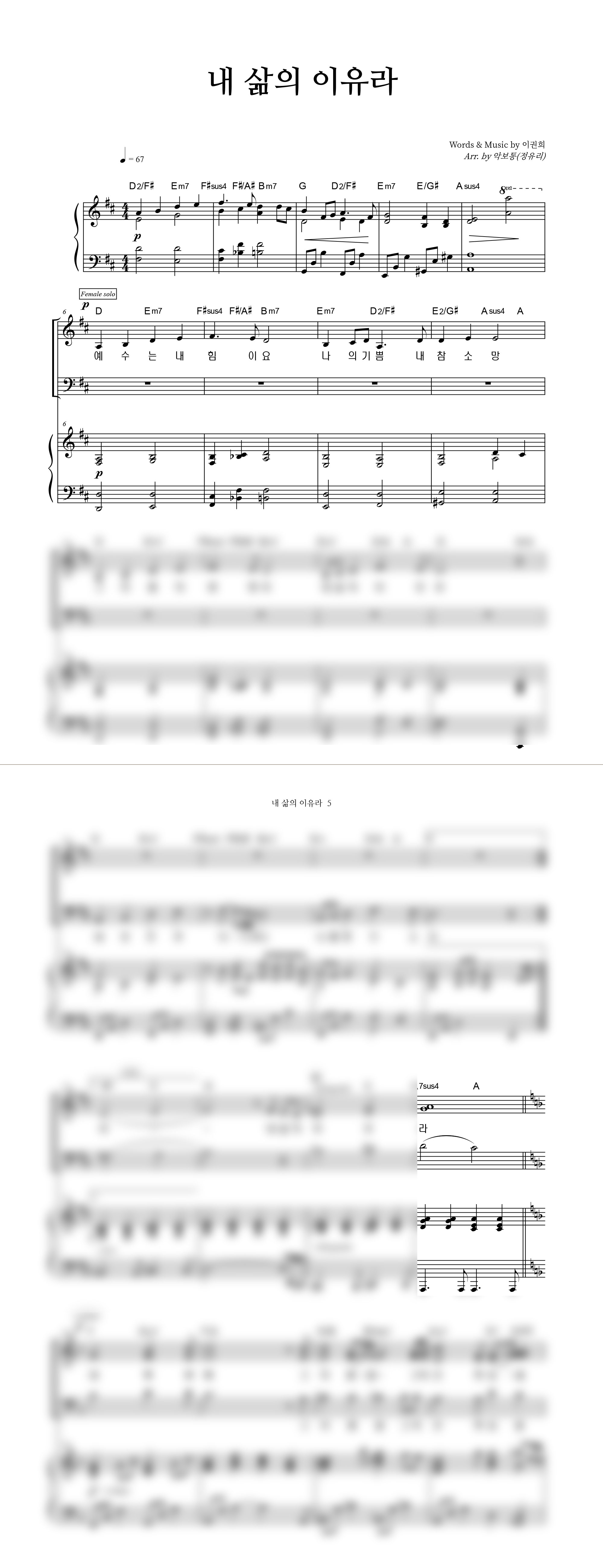 '내 삶의 이유라' 의 다른 악보형식