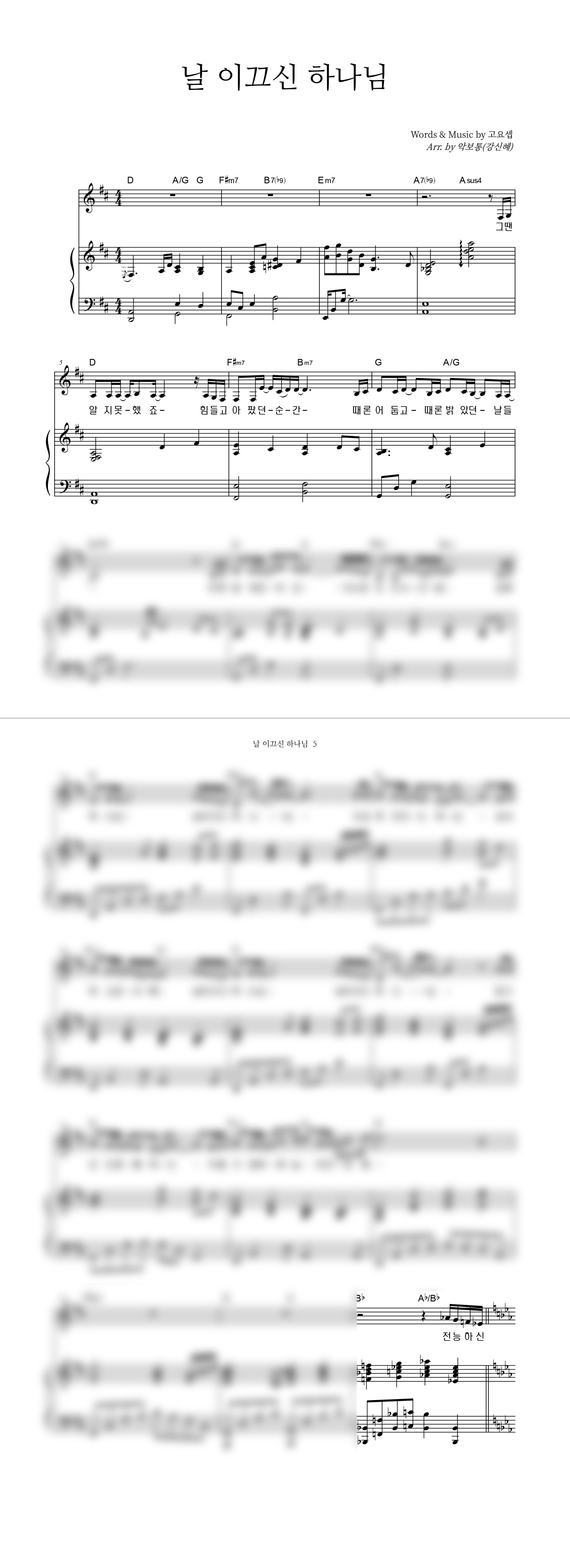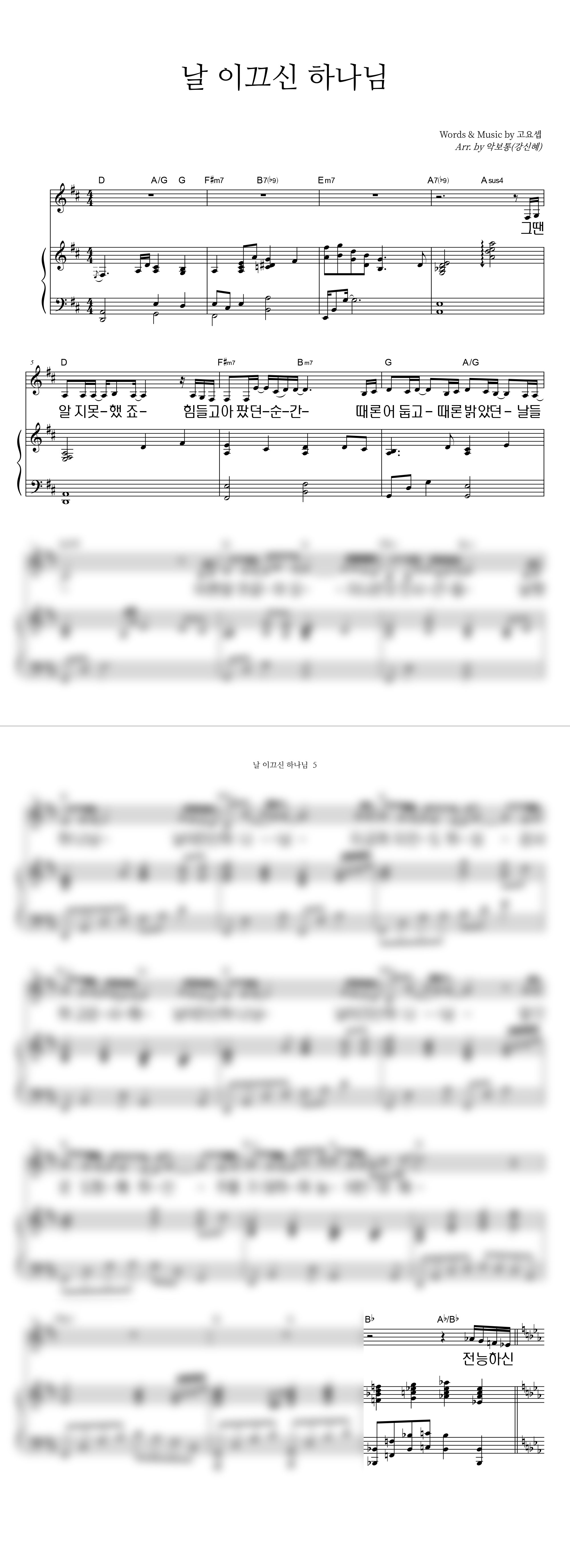 | 날 이끄신 하나님 | 성가 4부 + 피아노 반주 |