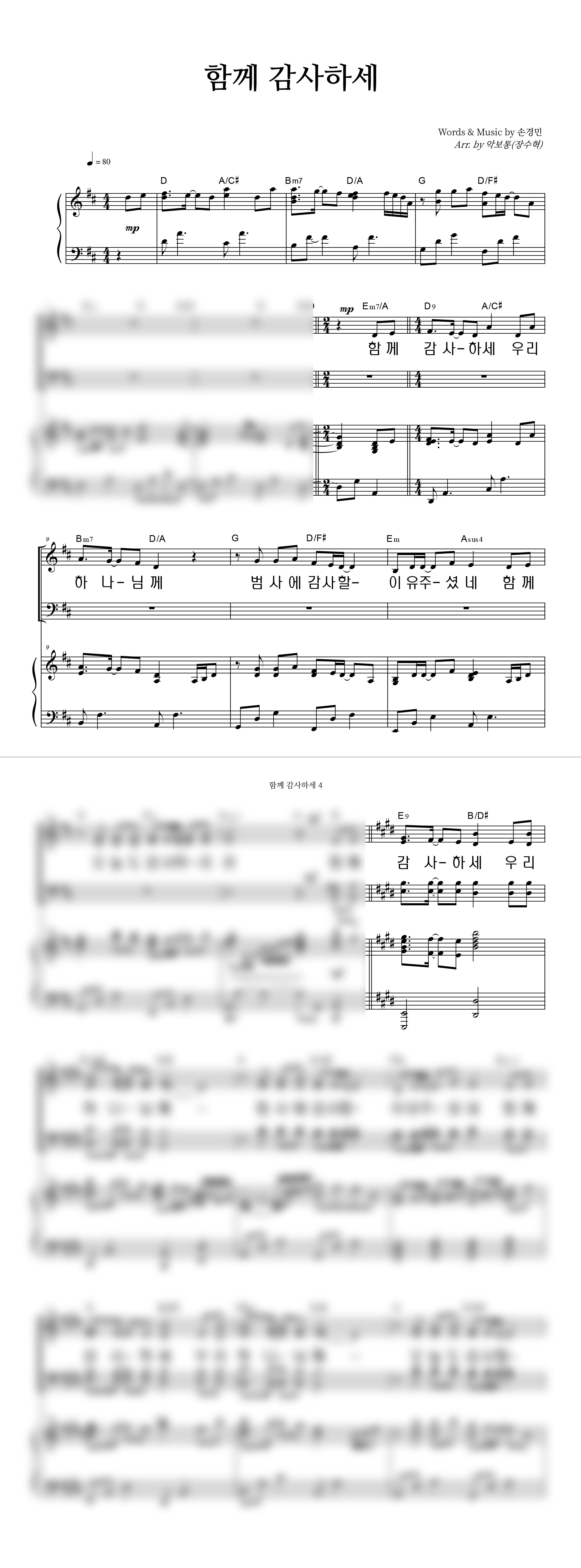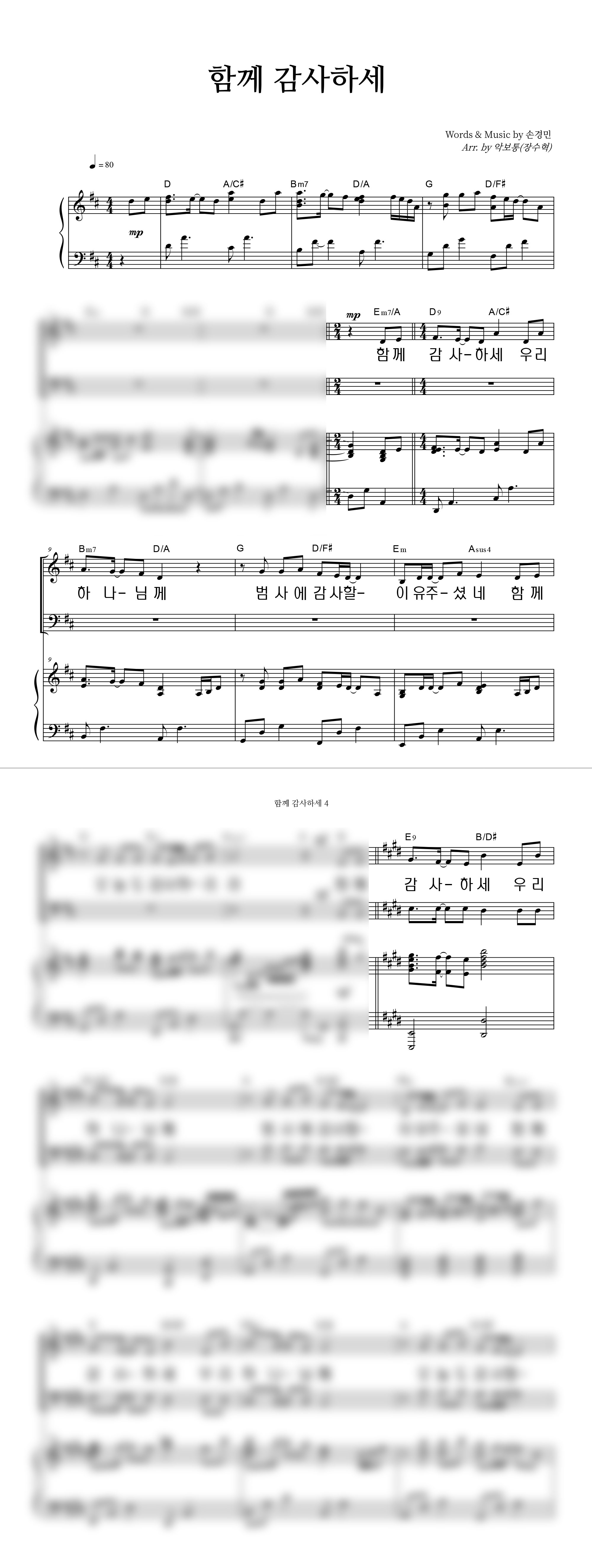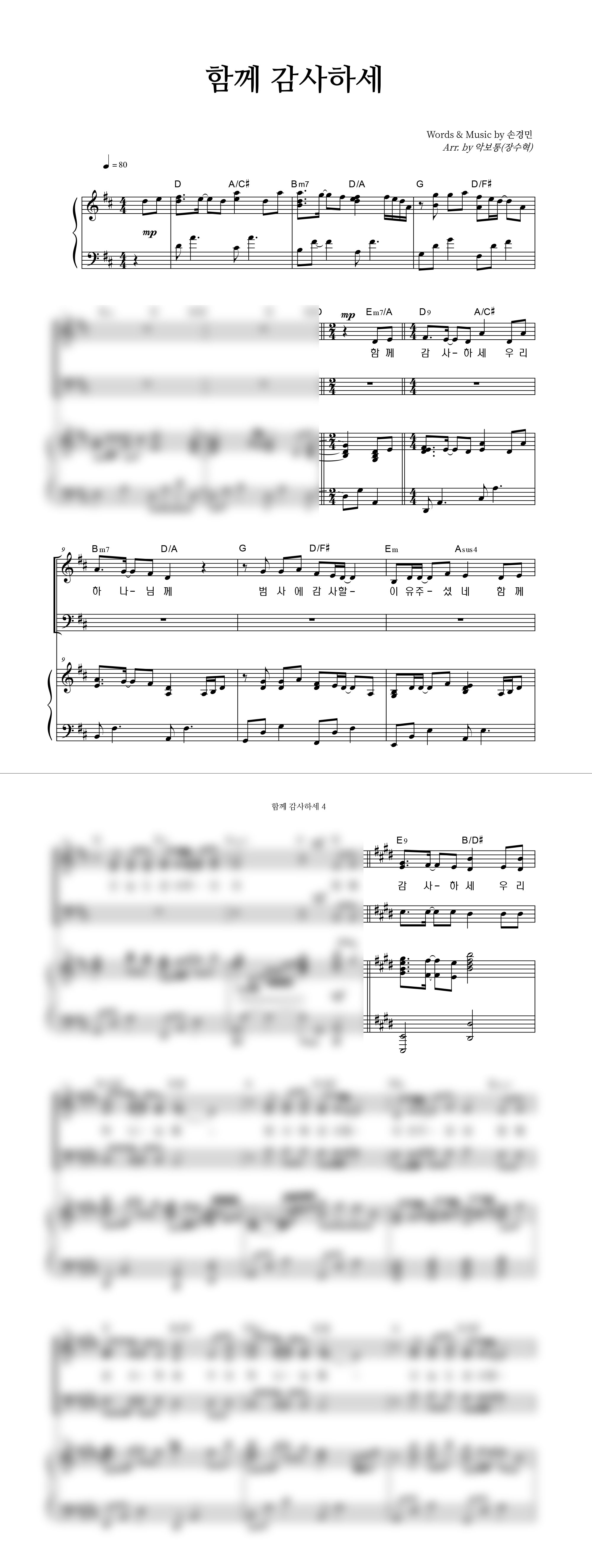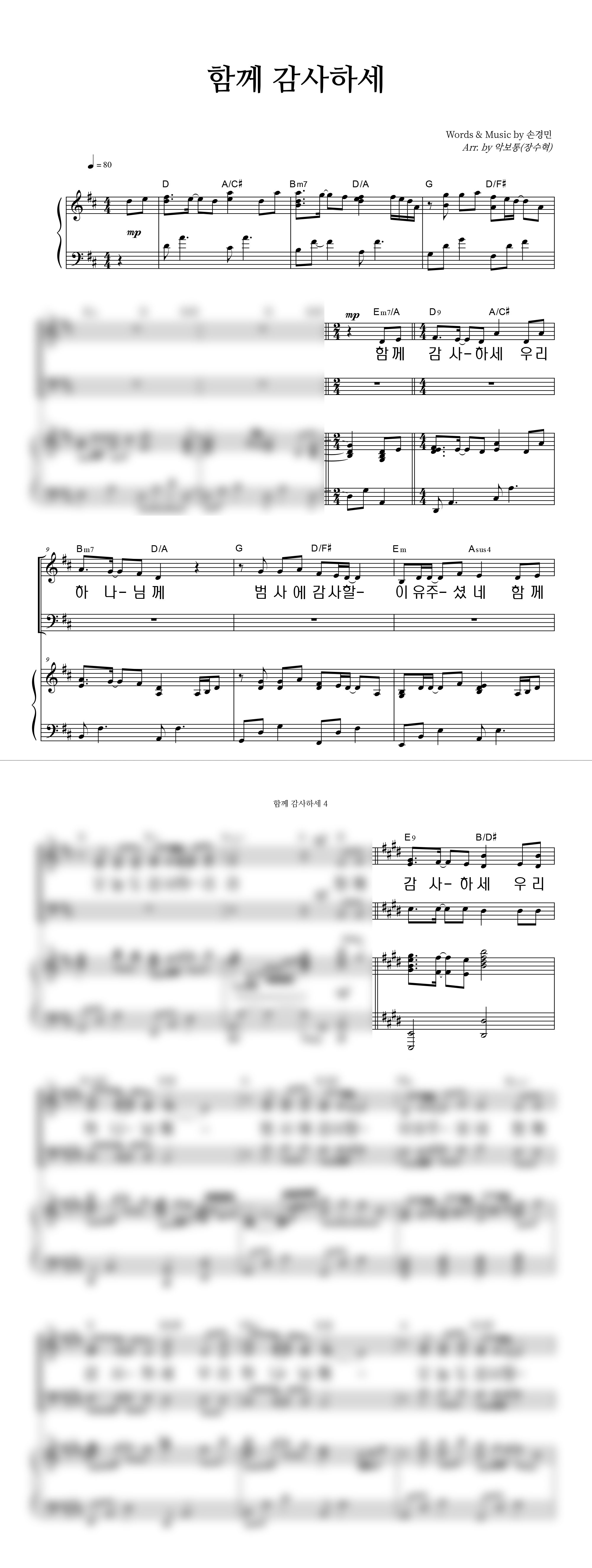 '함께 감사하세 (with 우혜림, 김정희, 이기명, 정명환)' 의 다른 악보