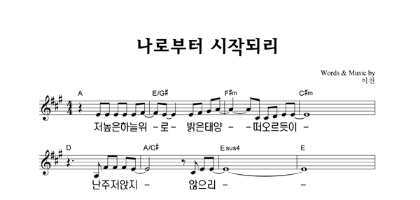 | 나로부터 시작되리 | 성가 2부 + 피아노 반주 |