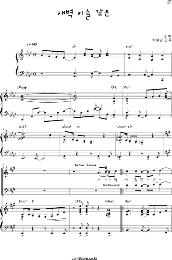 | 새벽이슬 같은 | 성가 4부 + 피아노 반주 |
