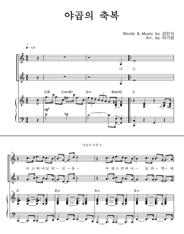 | 야곱의 축복 | 성가 3부 + 피아노 반주 |