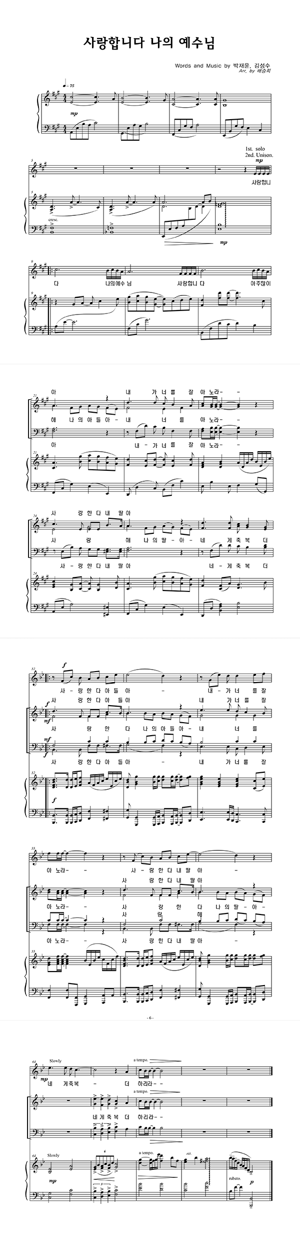 | 사랑합니다 나의 예수님 | 성가 4부 + 피아노 반주 |