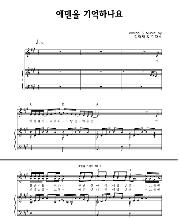 | 에덴을 기억하나요 | 성가 2부 + 피아노 반주 |