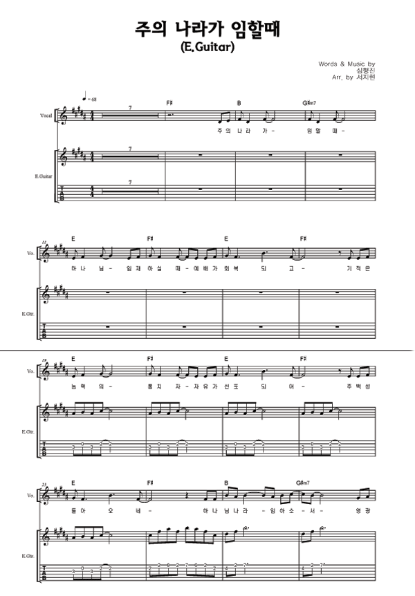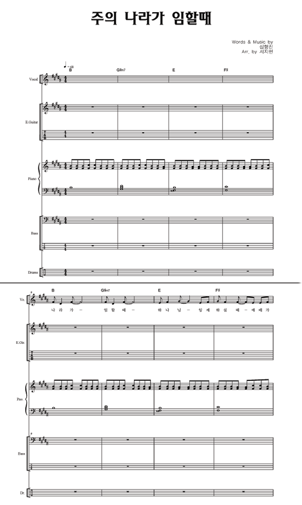 | 시온의 영광이 빛나는 아침 (전용희 편곡) | 성가 4부 + 피아노 반주 |