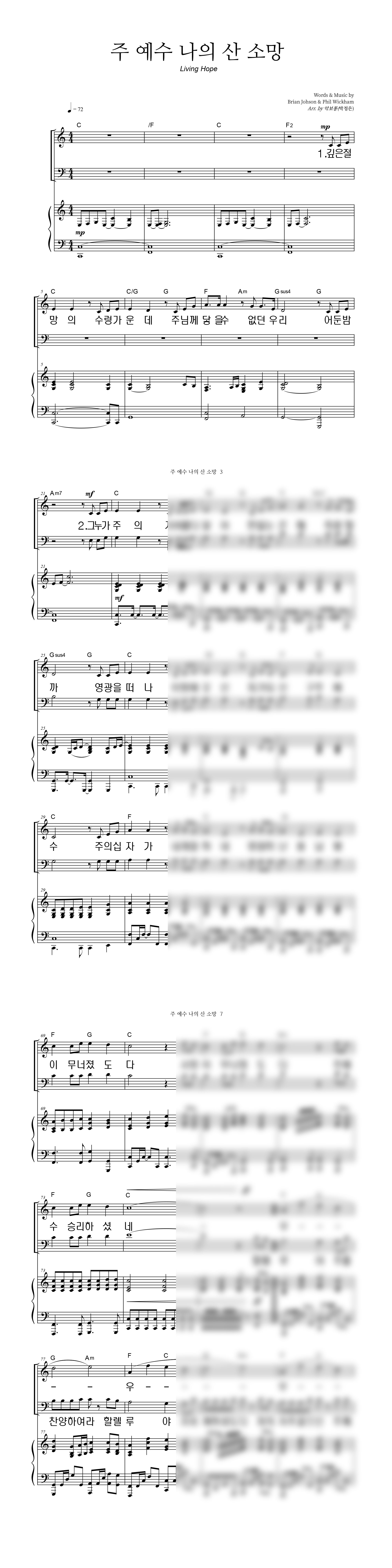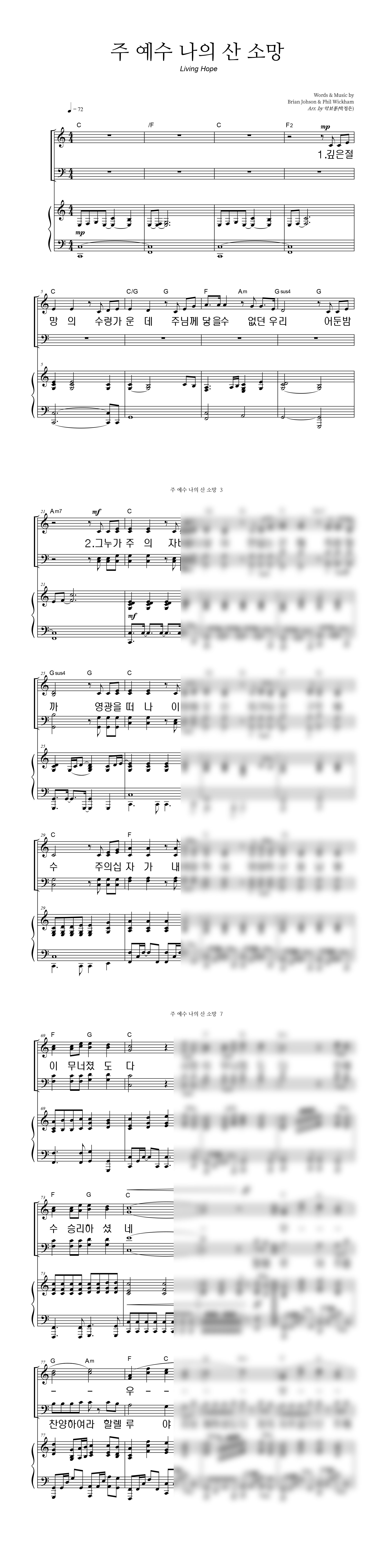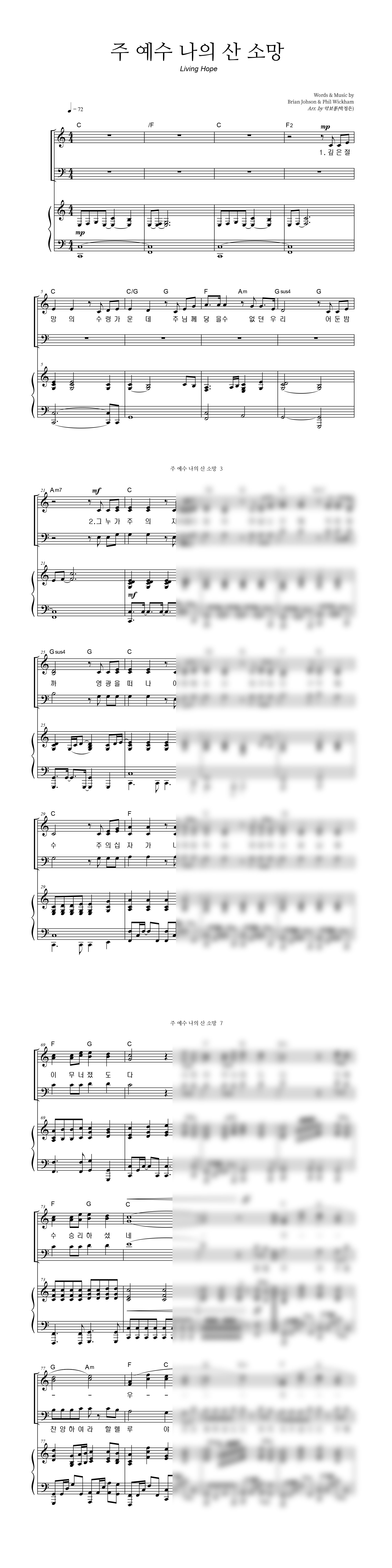 '주 예수 나의 산 소망 (Living Hope)' 의 다른 악보형식