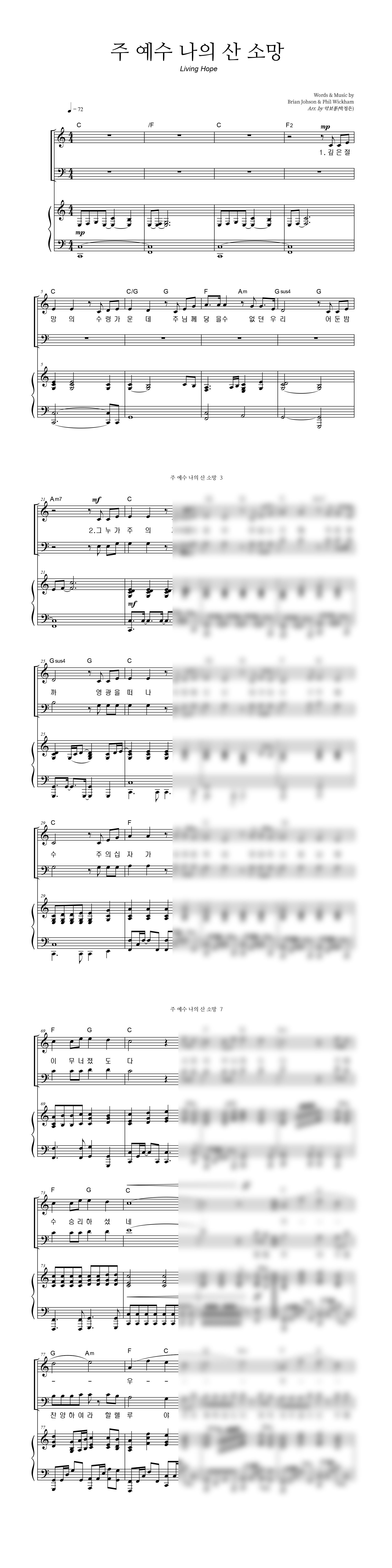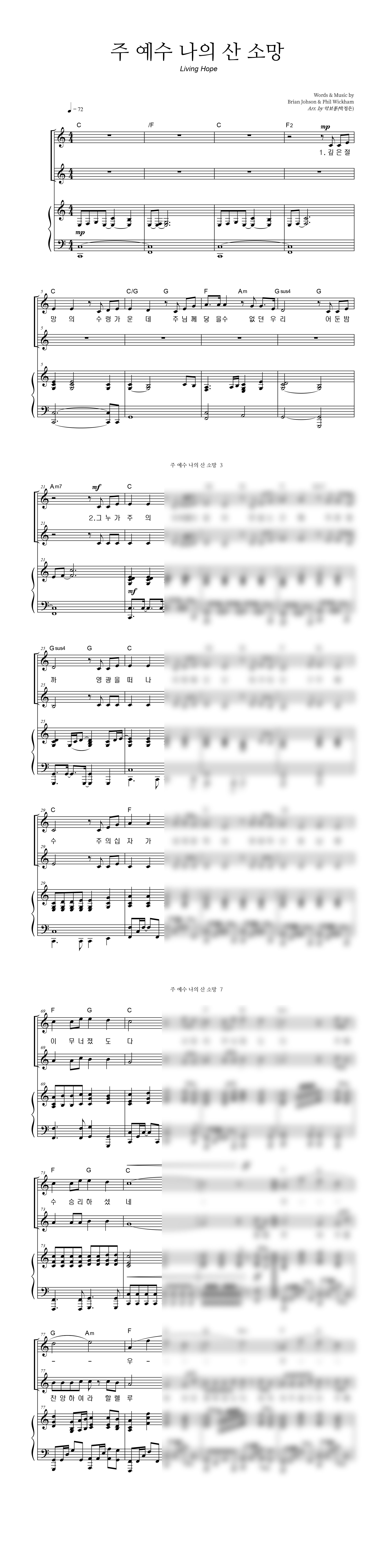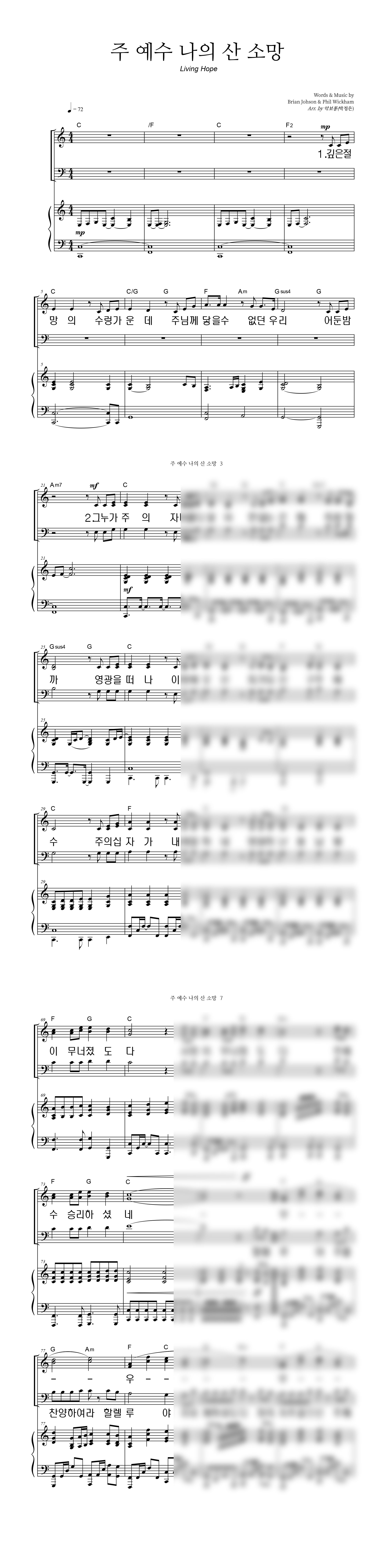'주 예수 나의 산 소망 (Living Hope)' 의 다른 악보형식