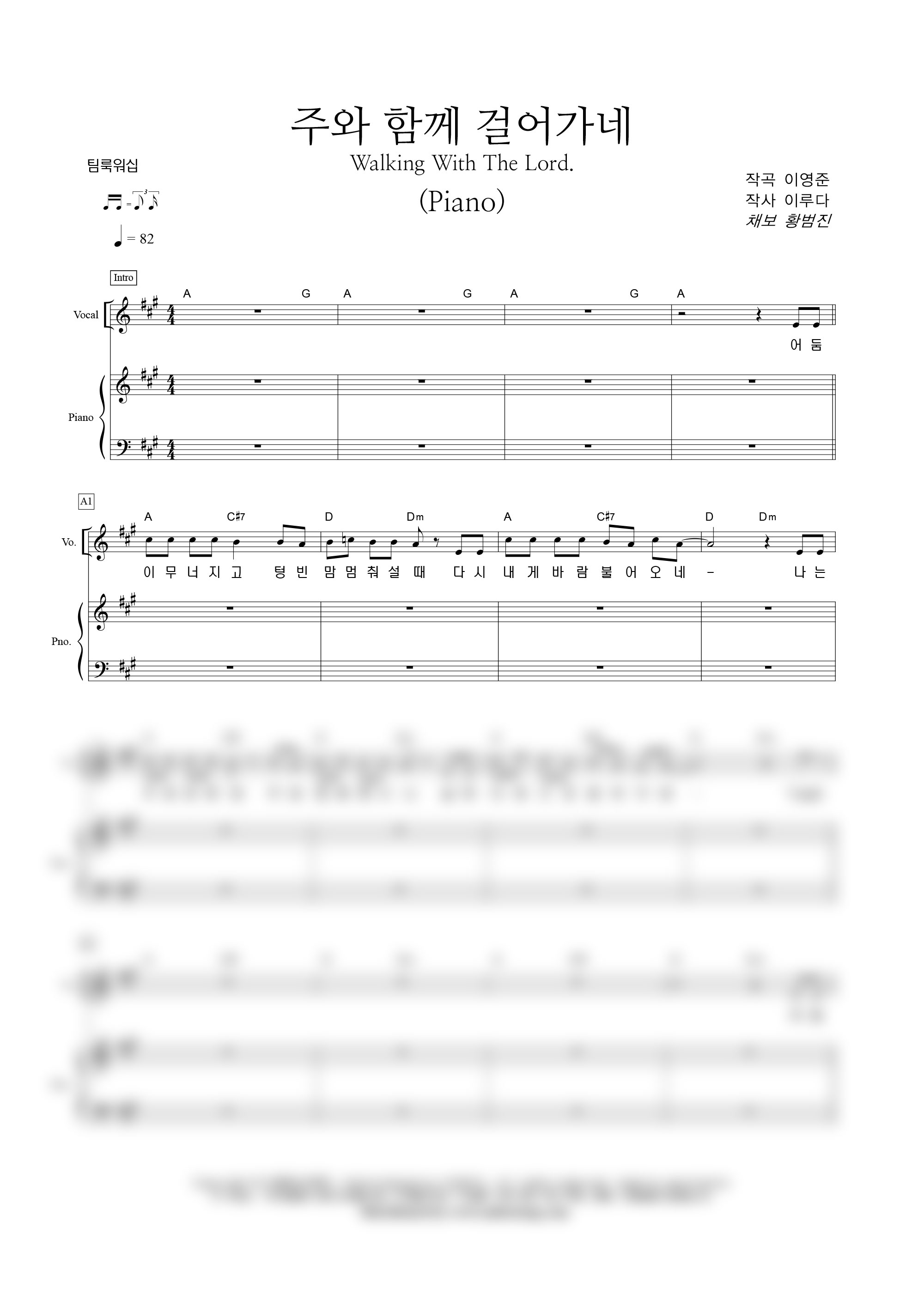 '주와 함께 걸어가네' 의 다른 악보형식