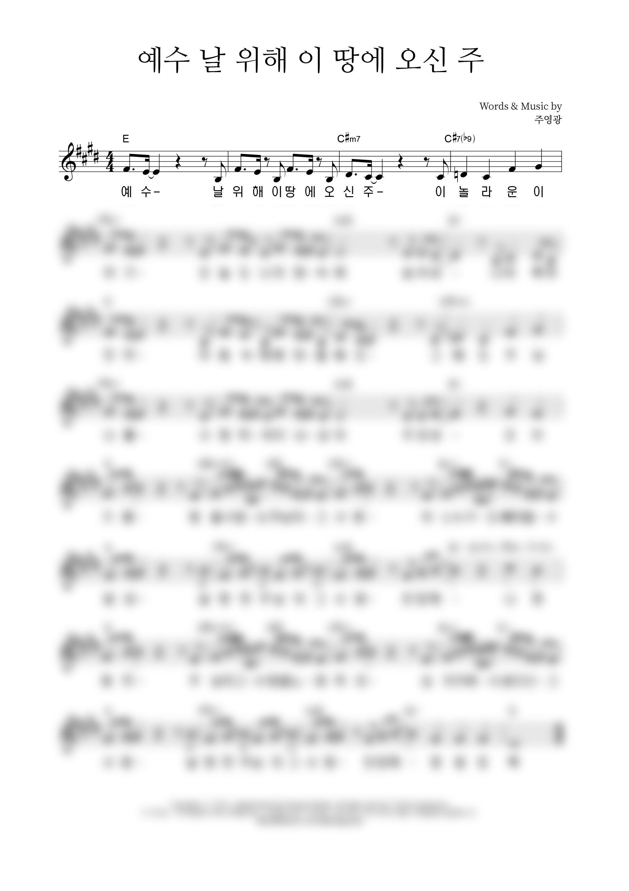 '예수 날 위해 이 땅에 오신 주' 의 다른 악보형식