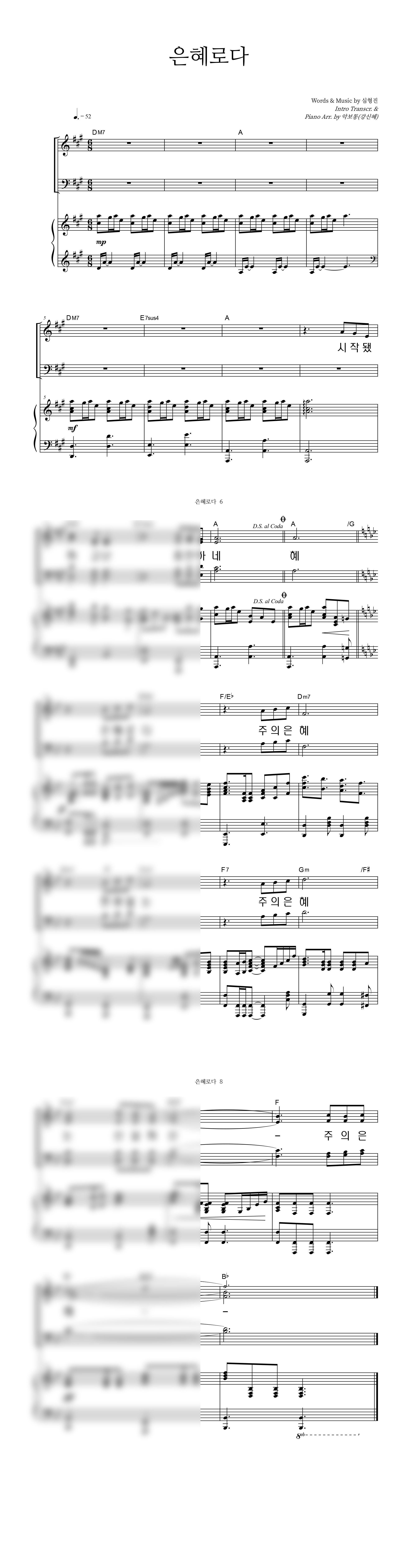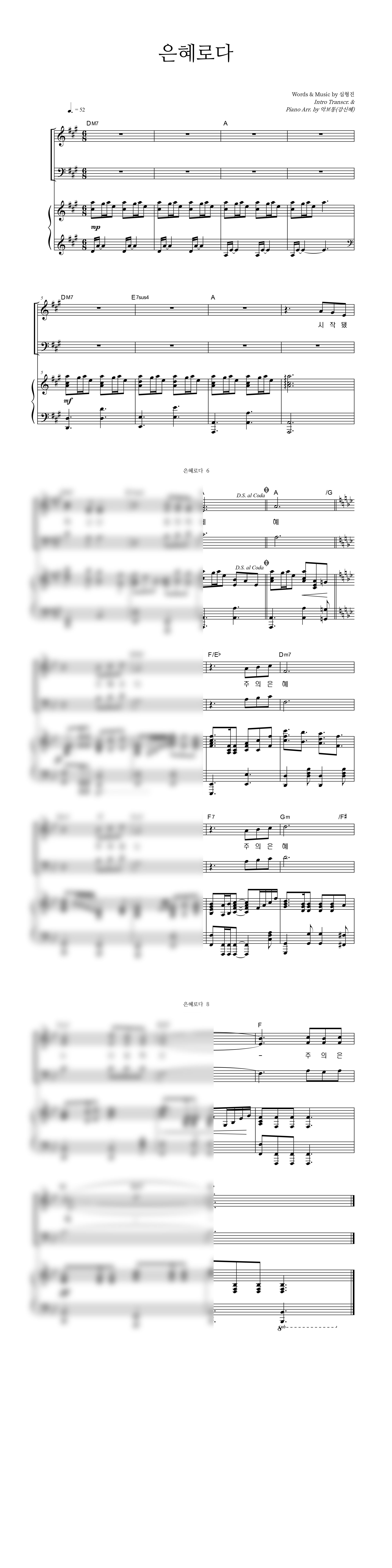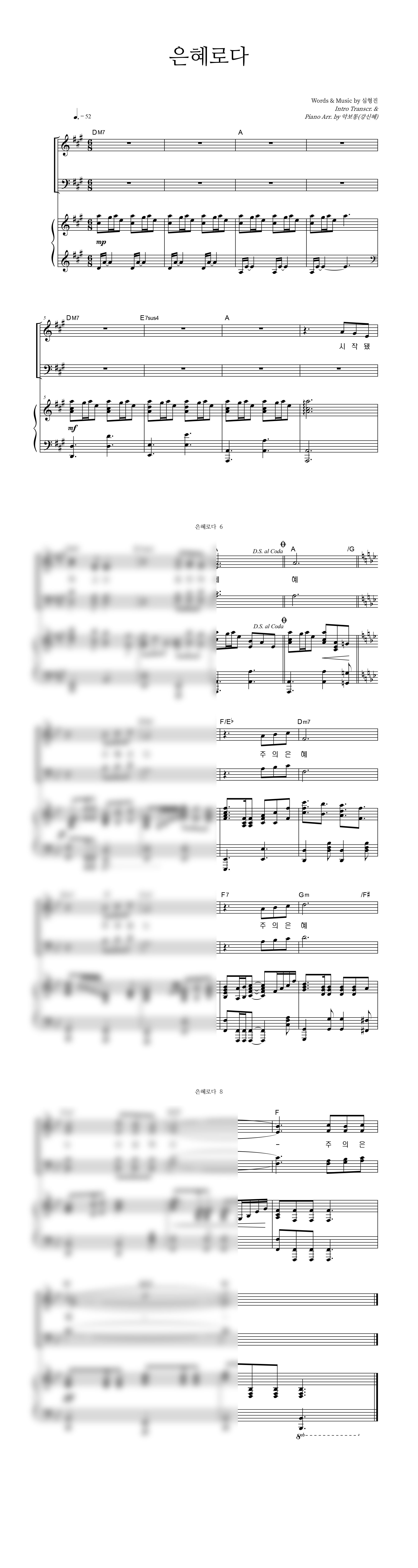 | 은혜로다 | 성가 4부 + 피아노 반주 |