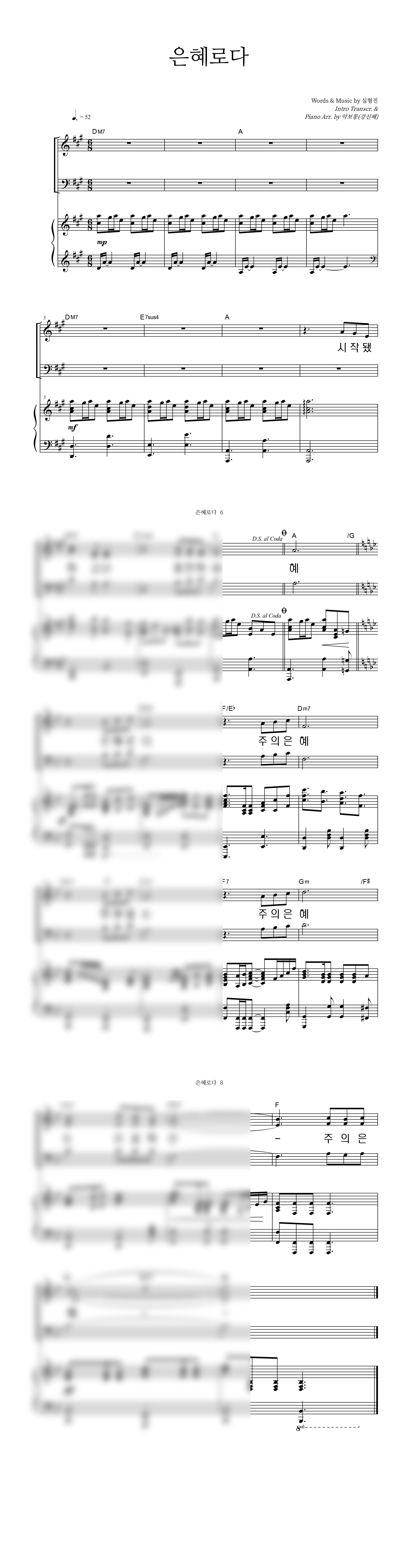 | 은혜로다 | 성가 3부 + 피아노 반주 |