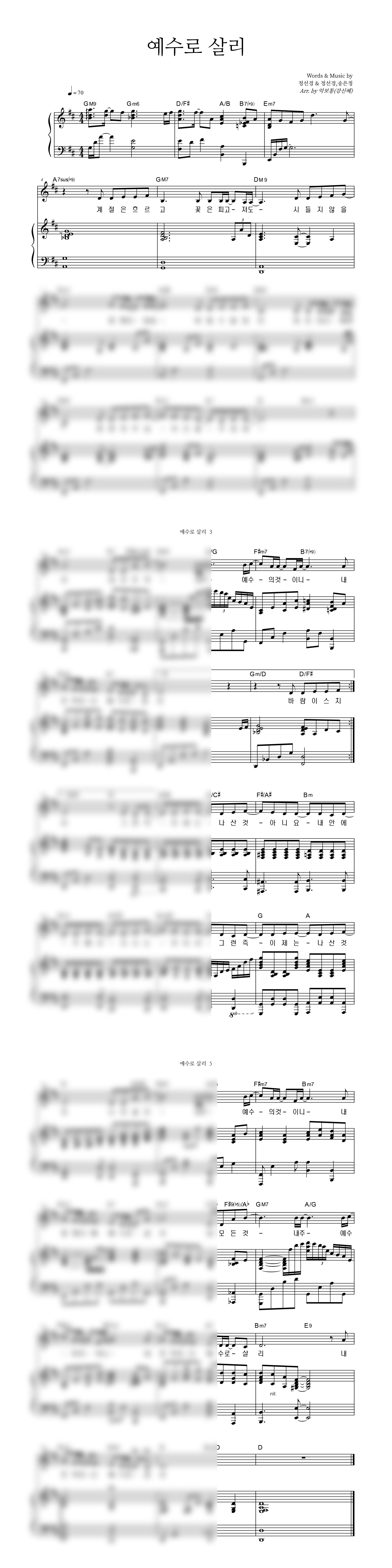 '예수로 살리' 의 다른 악보형식