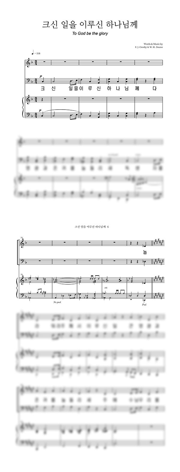 성가 4부 + 피아노 반주 | F. J. Crosby | W. H. Doane |