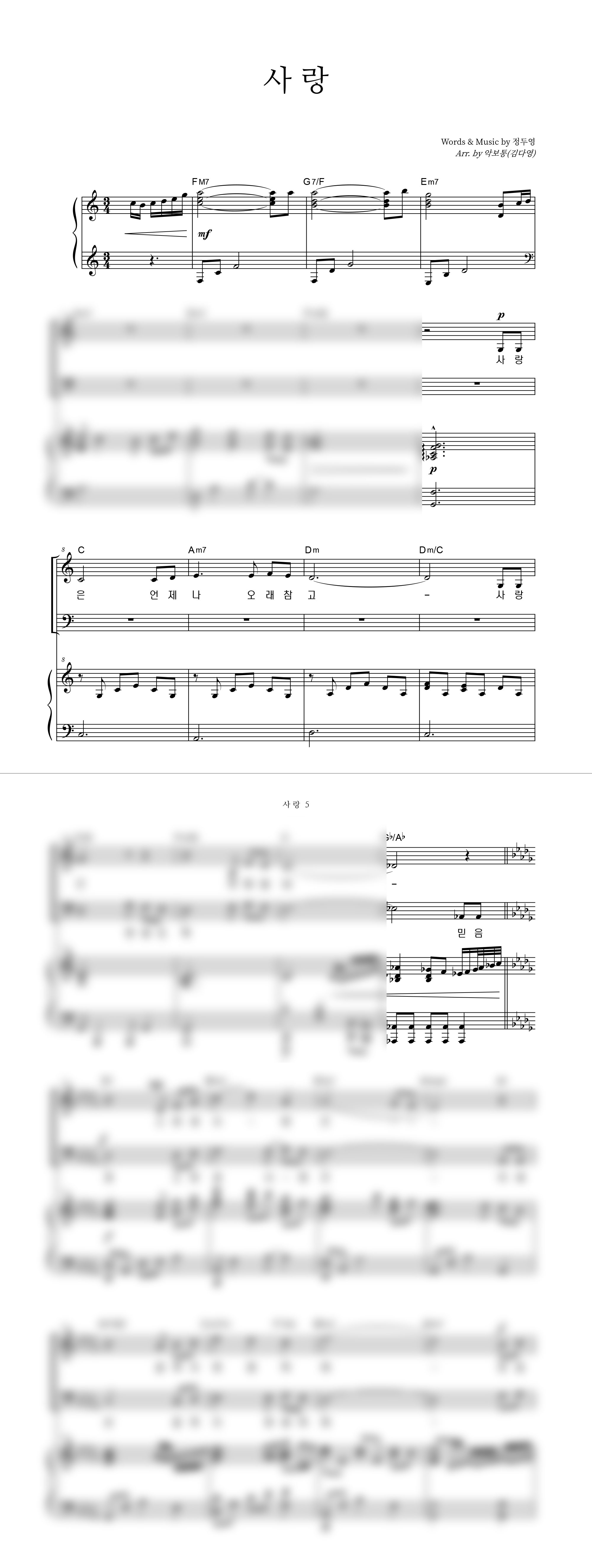 성가 2부 + 피아노 반주 | 정두영 | 정두영 | 김다영 |