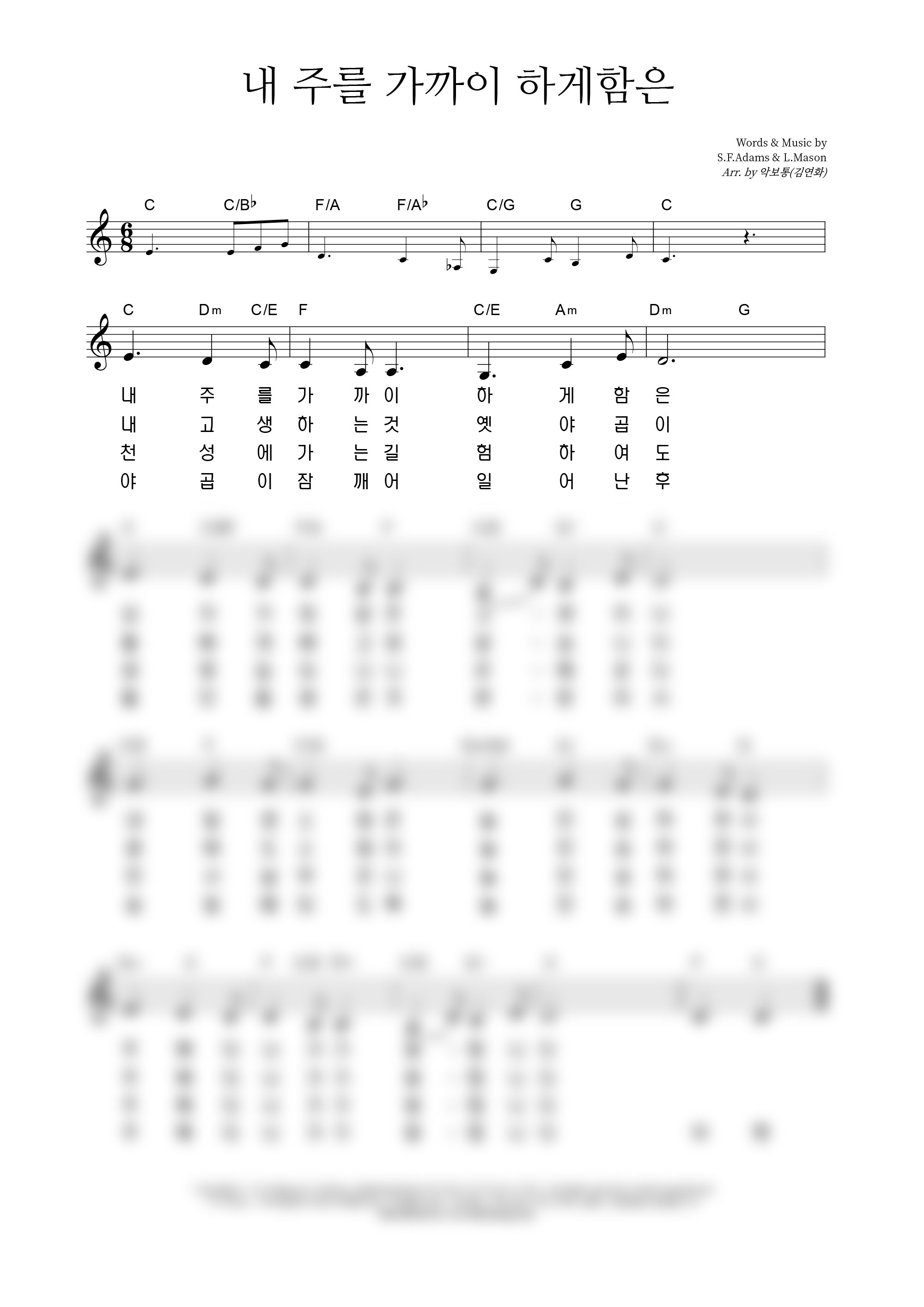 성가 4부 + 피아노 반주 | F. J. Crosby | W. H. Doane | 장수혁 |