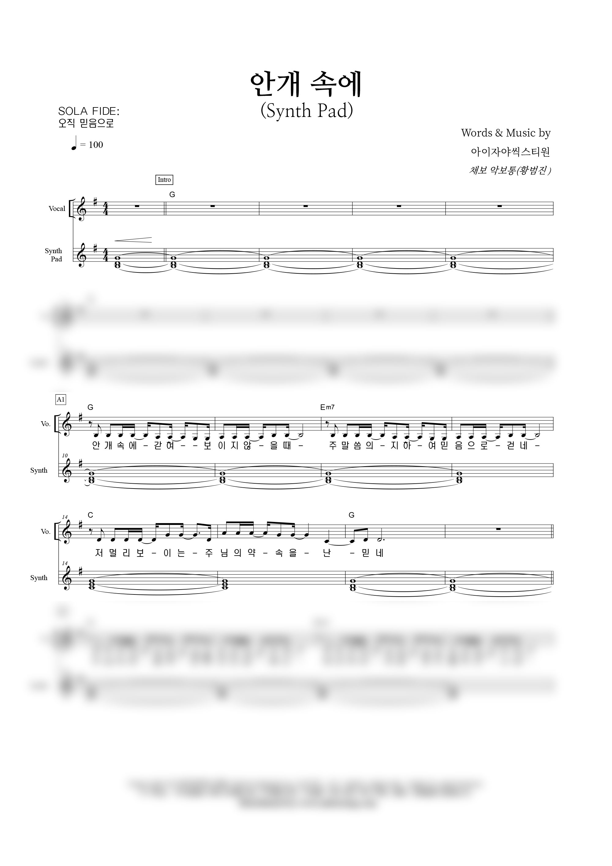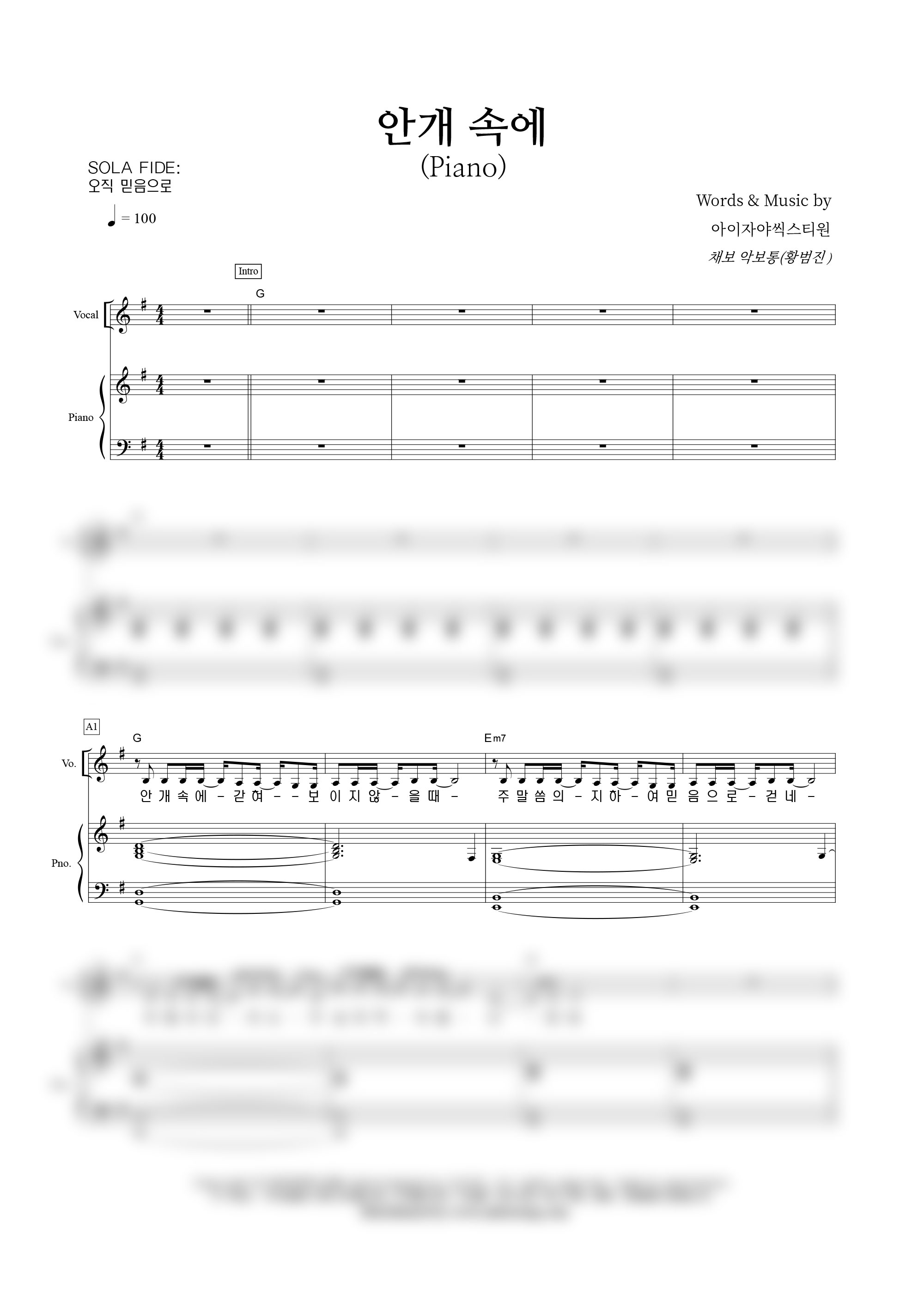 성가 4부 + 피아노 반주 | 손경민 | 손경민 | 소벗 |