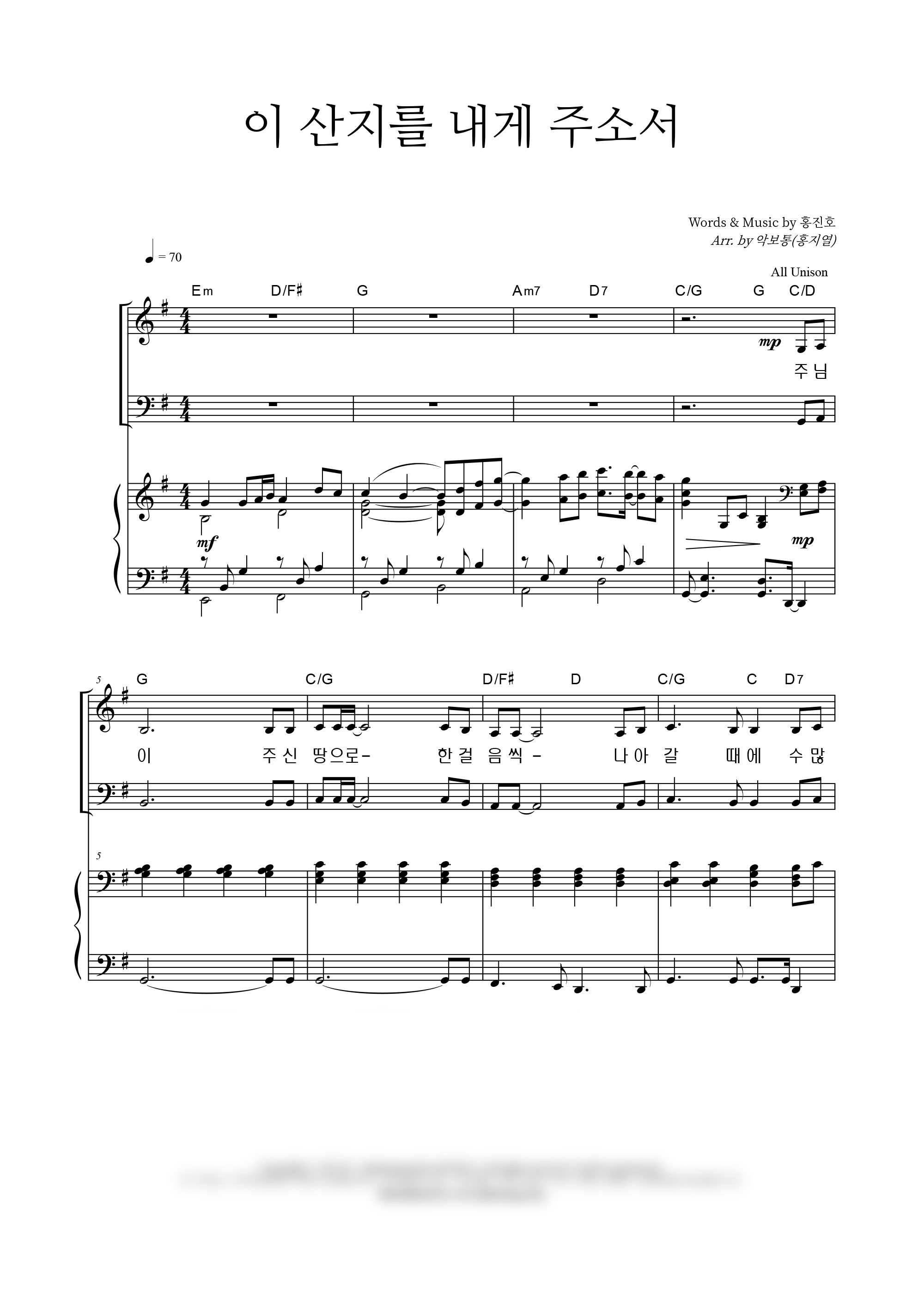 성가 4부 + 피아노 반주 | 손경민 | 손경민 | 홍지열 |