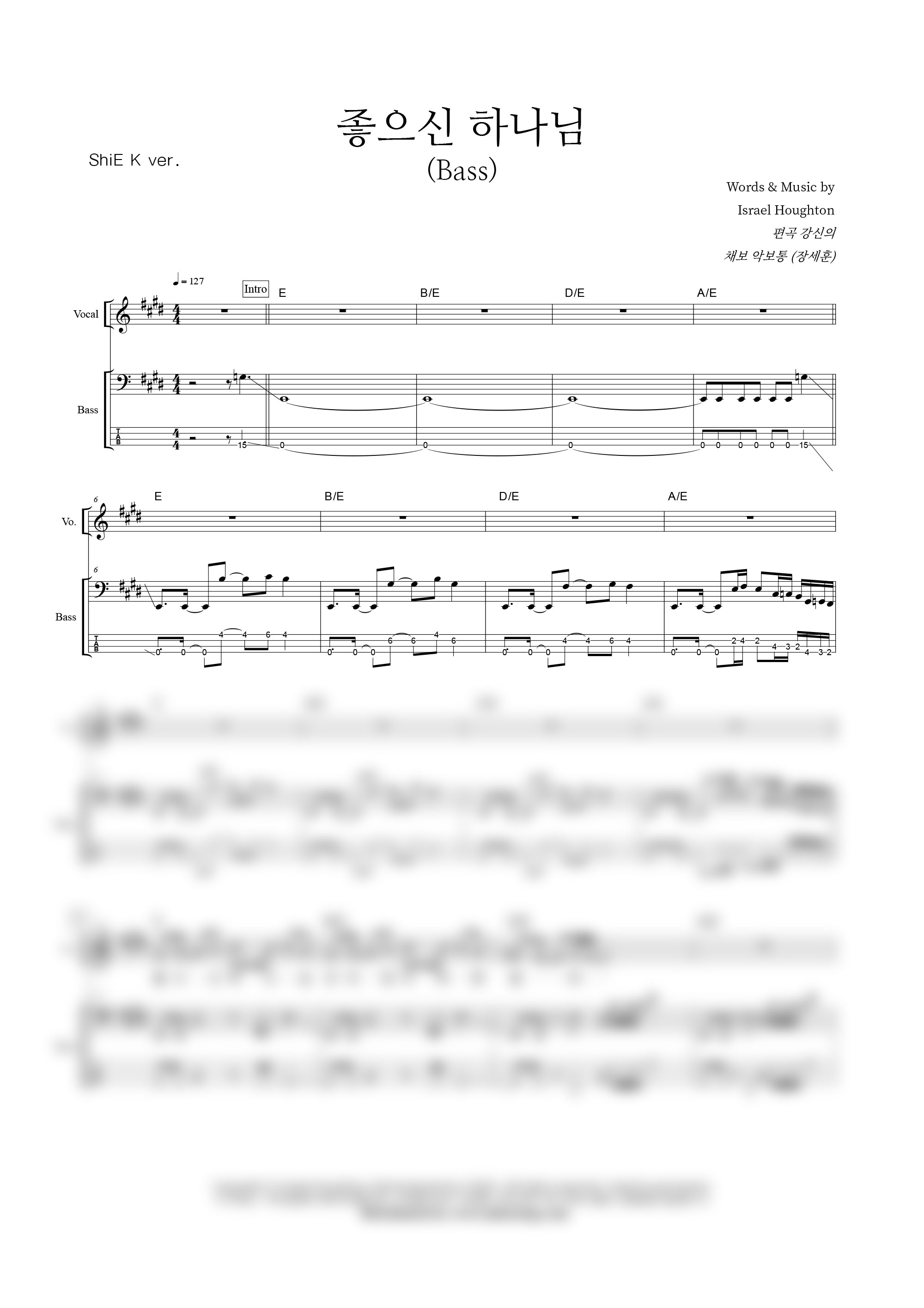 밴드스코어 베이스기타 | Israel Houghton | Israel Houghton | 강신의 |