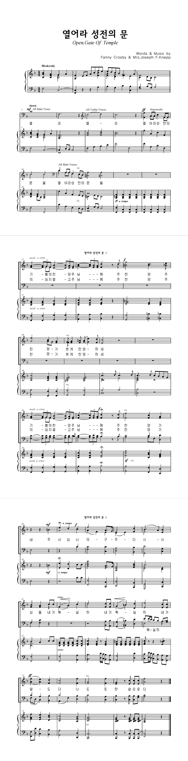 성가 4부 + 피아노 반주 | Fanny Crosby | Mrs.Joseph F.Knapp |