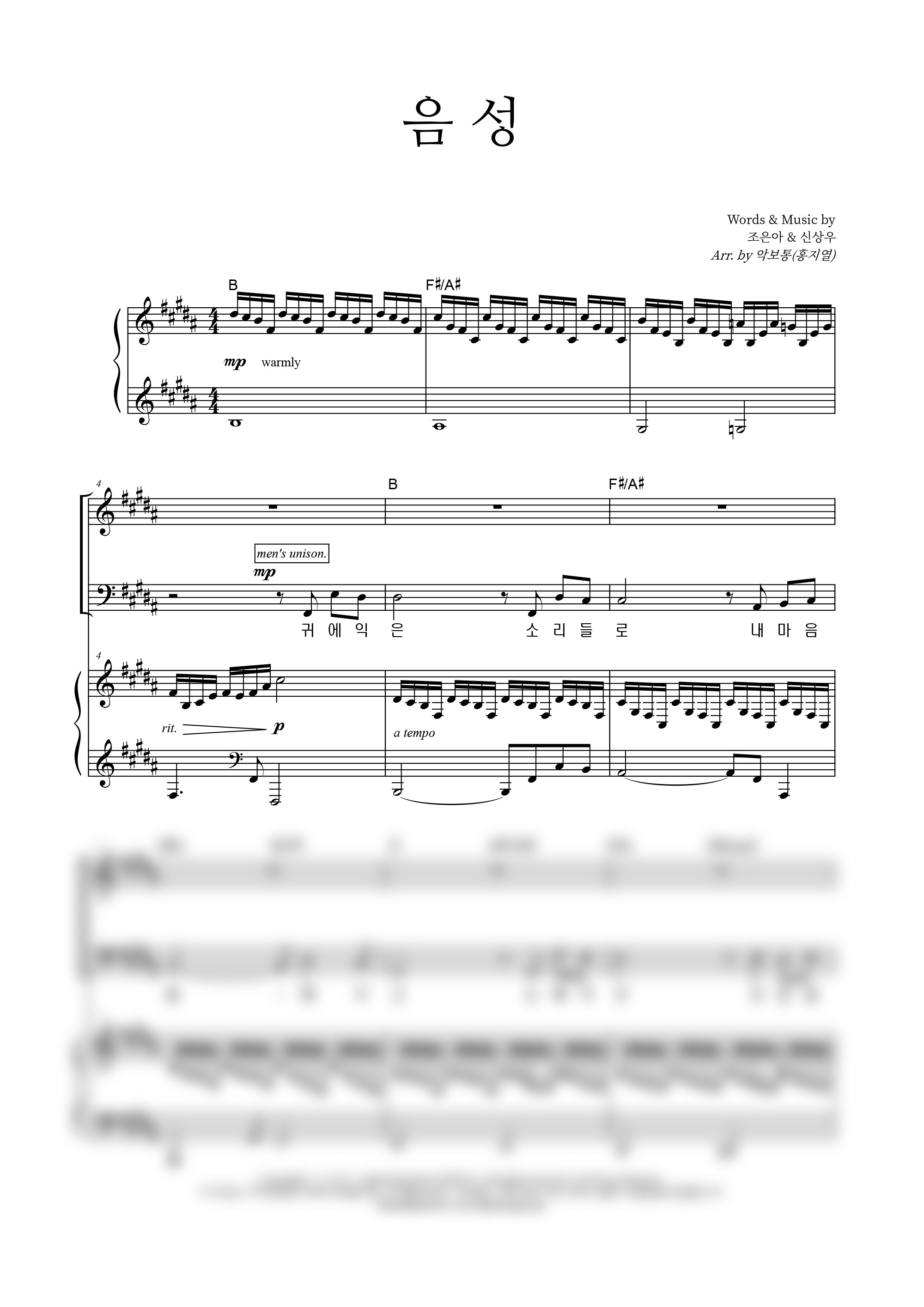 성가 4부 + 피아노 반주 | 손경민 | 손경민 | 소벗 |