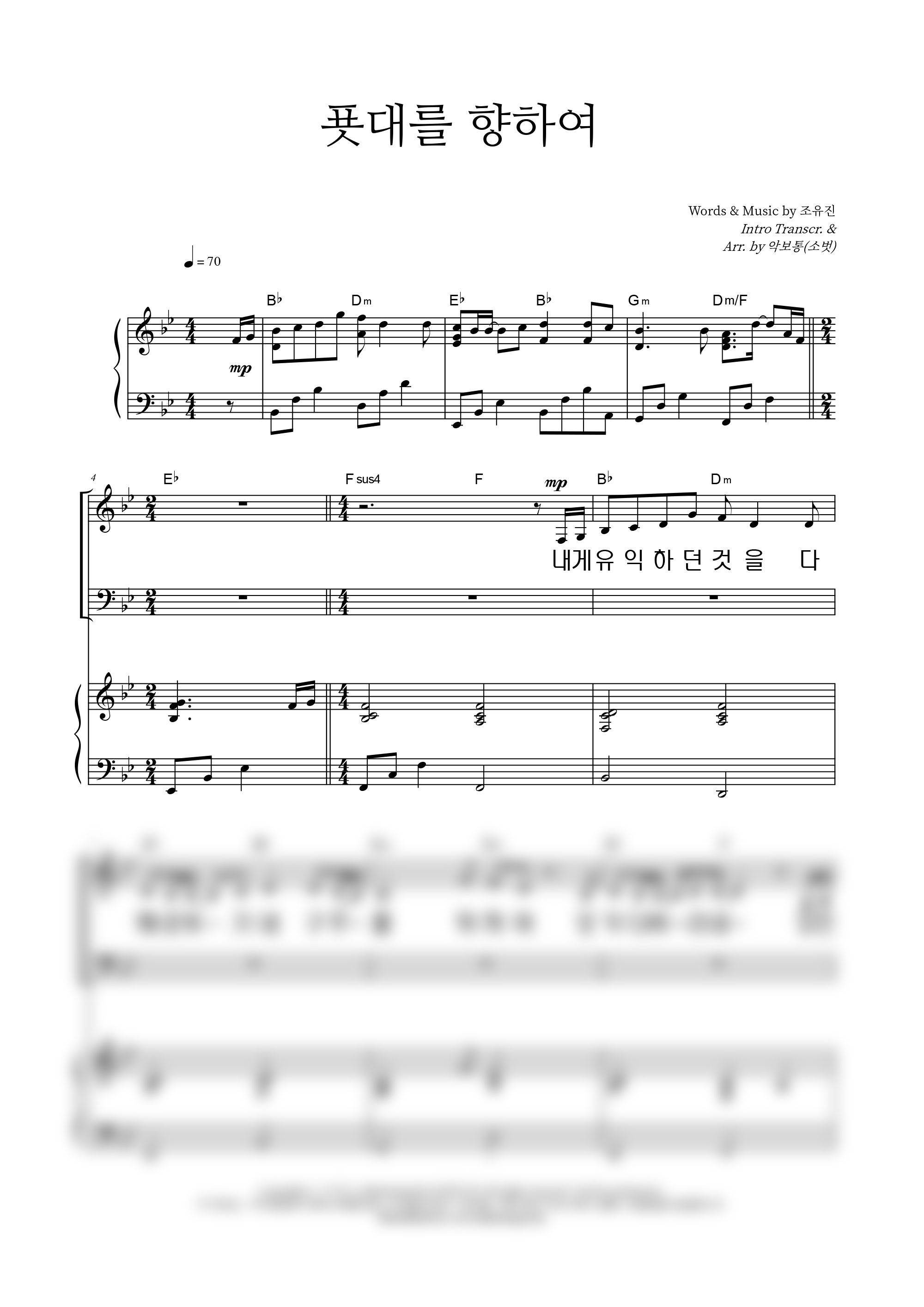 성가 4부 + 피아노 반주 | 조유진 | 조유진 | 소벗 |