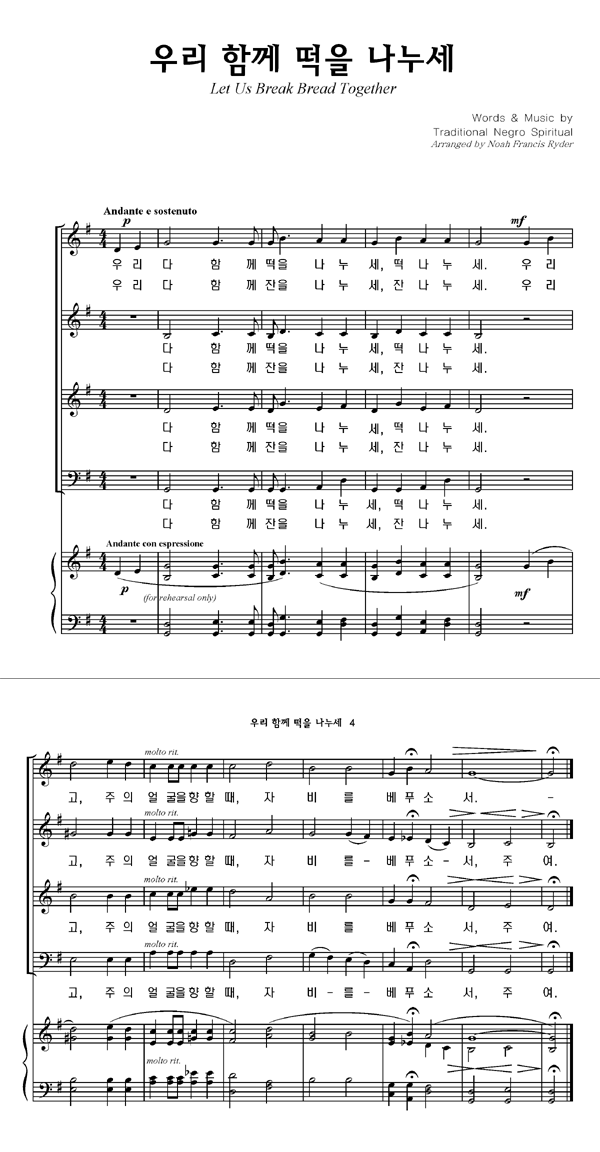 성가 4부 + 피아노 반주 | Negro Spiritual | Negro Spiritual | Noah Francis Ryder |