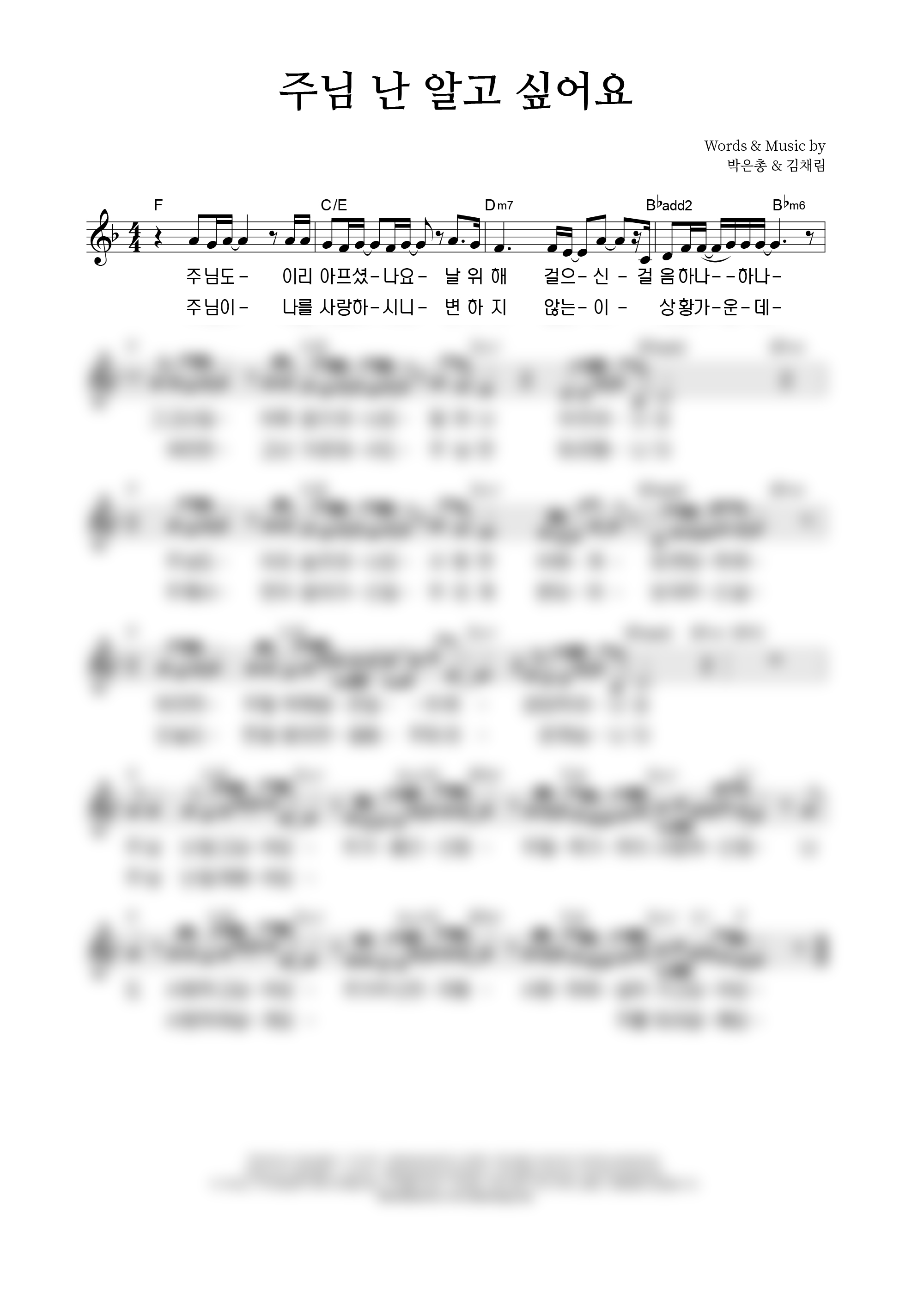 주님 난 알고 싶어요 | 보컬+피아노반주 3단 | 박은총 | 김채림 | 홍종원 |