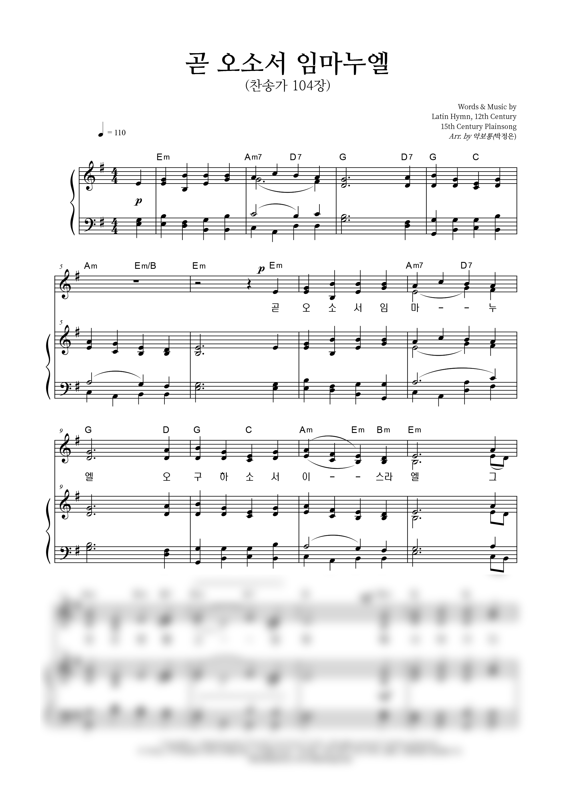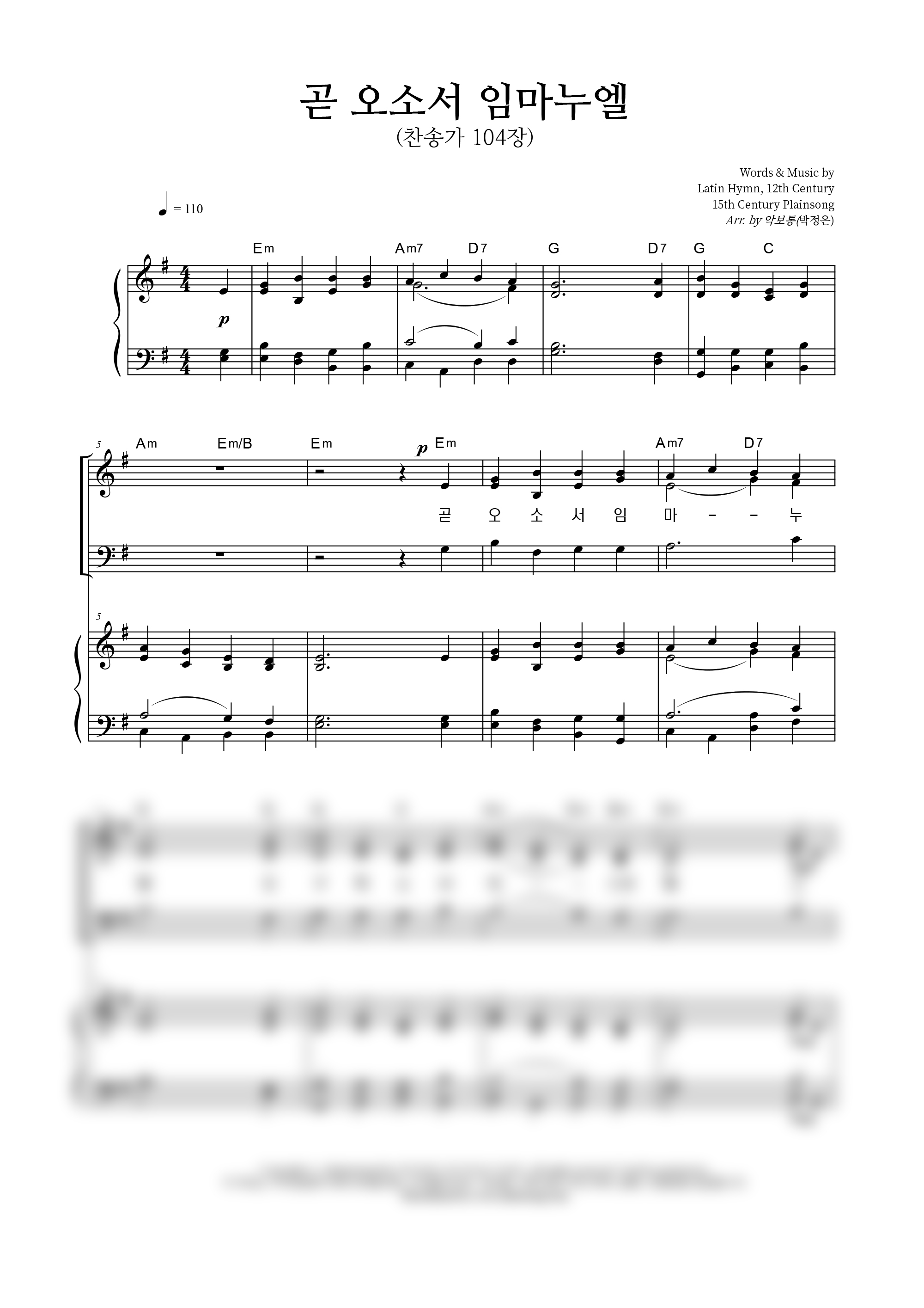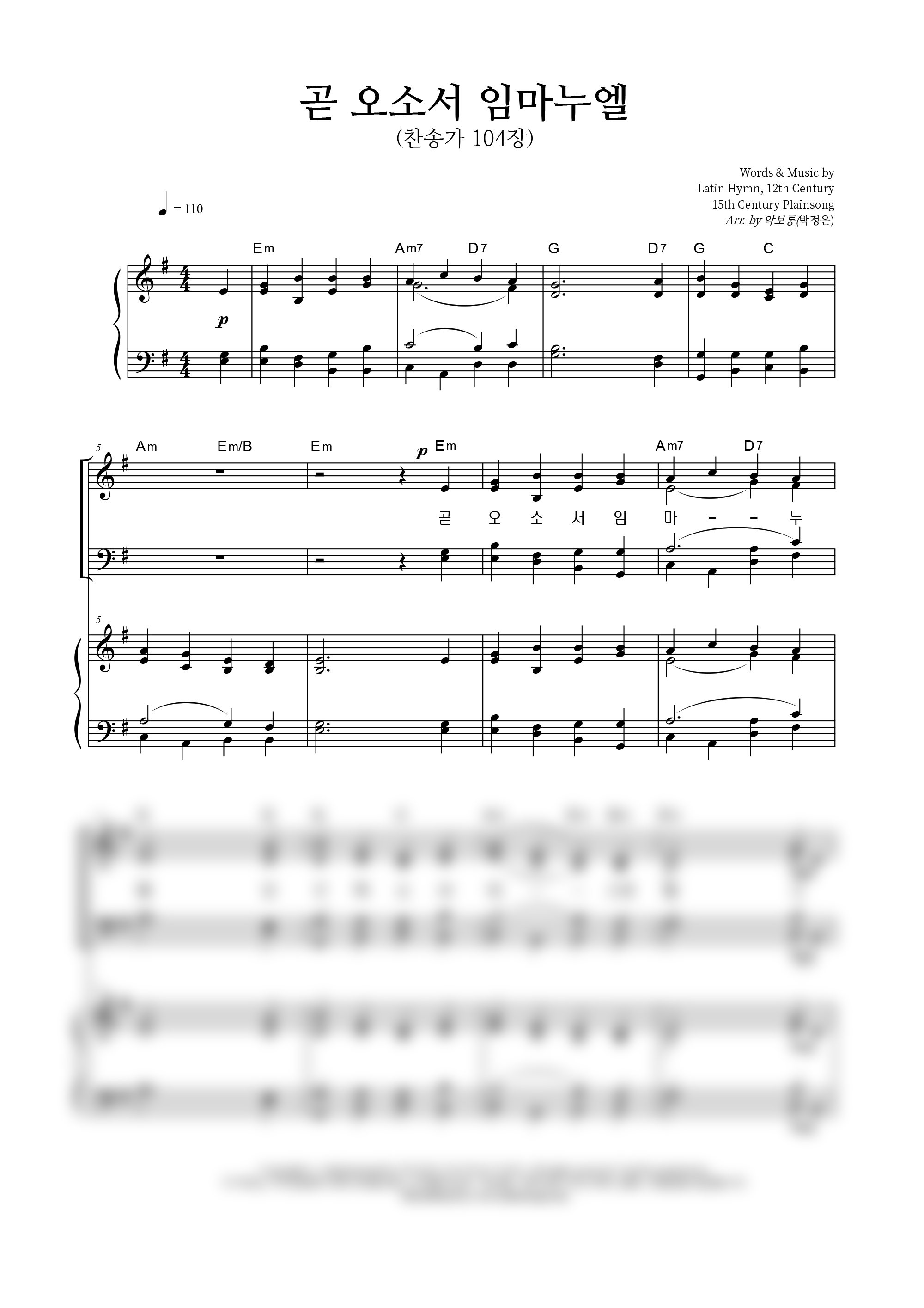 성가 4부 + 피아노 반주 | 미상(없음) | 미상(없음) | 박정은 |