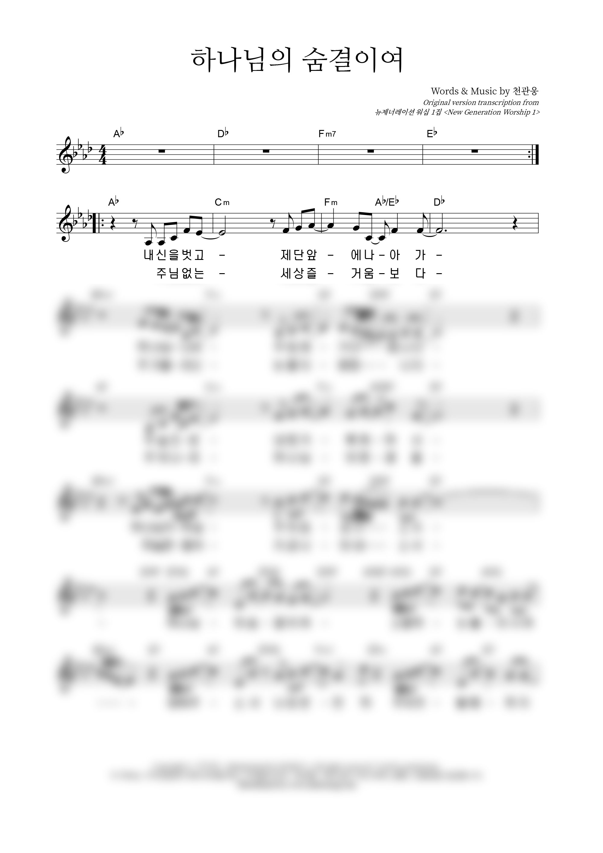 성가 4부 + 피아노 반주 | Chris Rice | Chris Rice | 홍지열 |