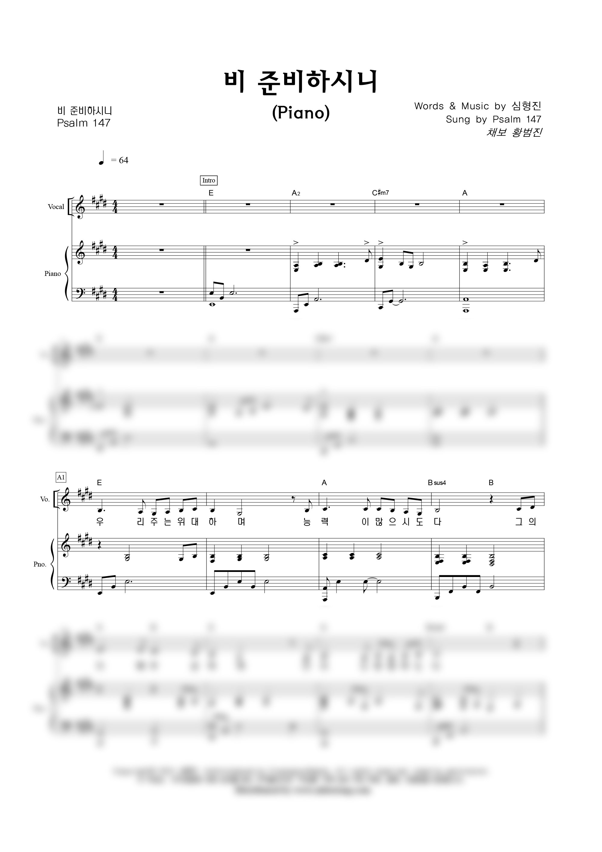 성가 2부 + 피아노 반주 | 이종현 | 이종현 | 장수혁 |