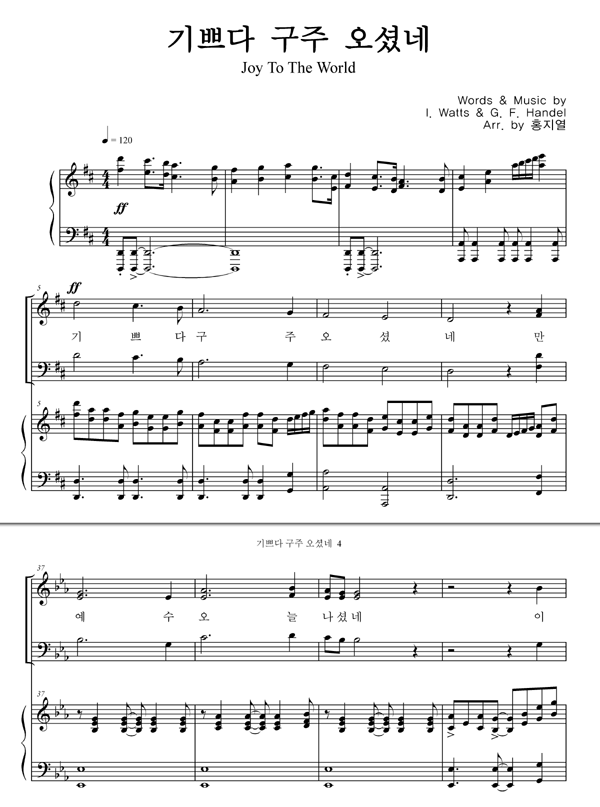 | 기쁘다 구주 오셨네 (찬송가 115장) | 성가 3부 + 피아노 반주 |