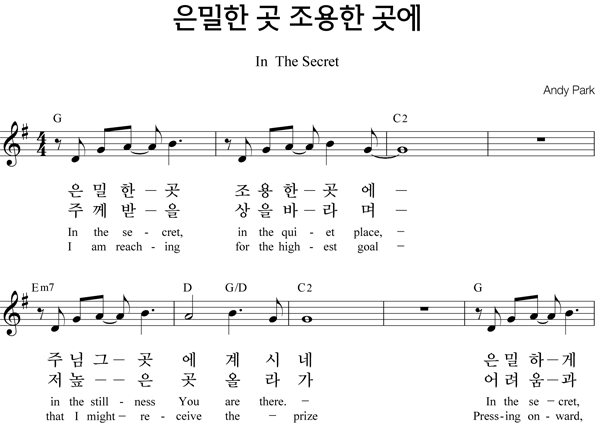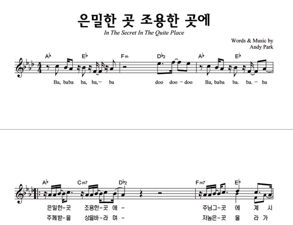 | 은밀한 곳 조용한 곳에 (주 알기 원해) | 성가 2부 + 피아노 반주 |