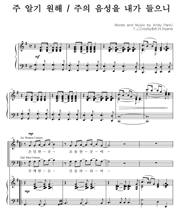 | 은밀한 곳 조용한 곳에 (주 알기 원해) | 성가 3부 + 피아노 반주 |