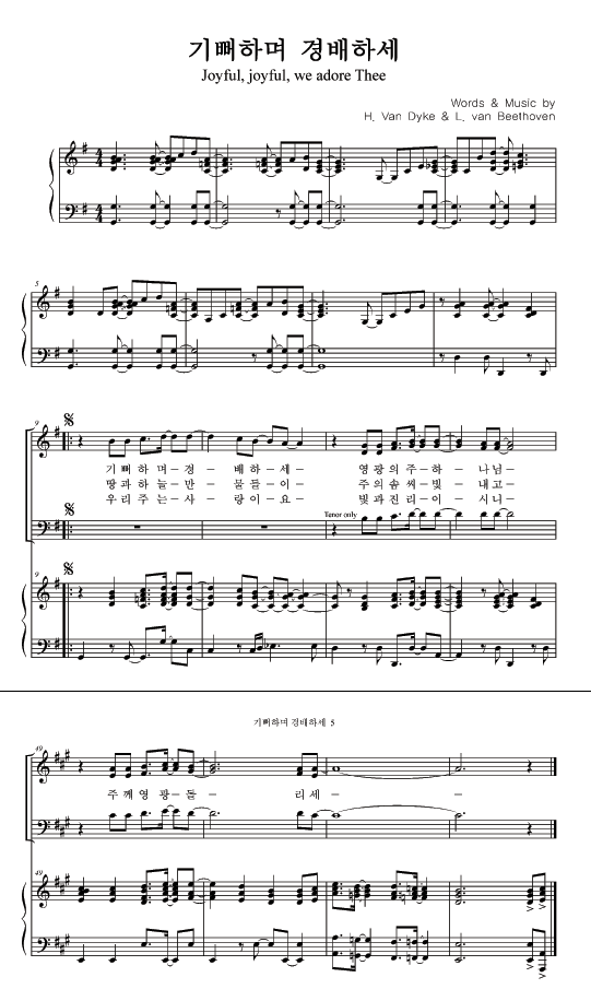 | 기뻐하며 경배하세 | 성가 4부 + 피아노 반주 |