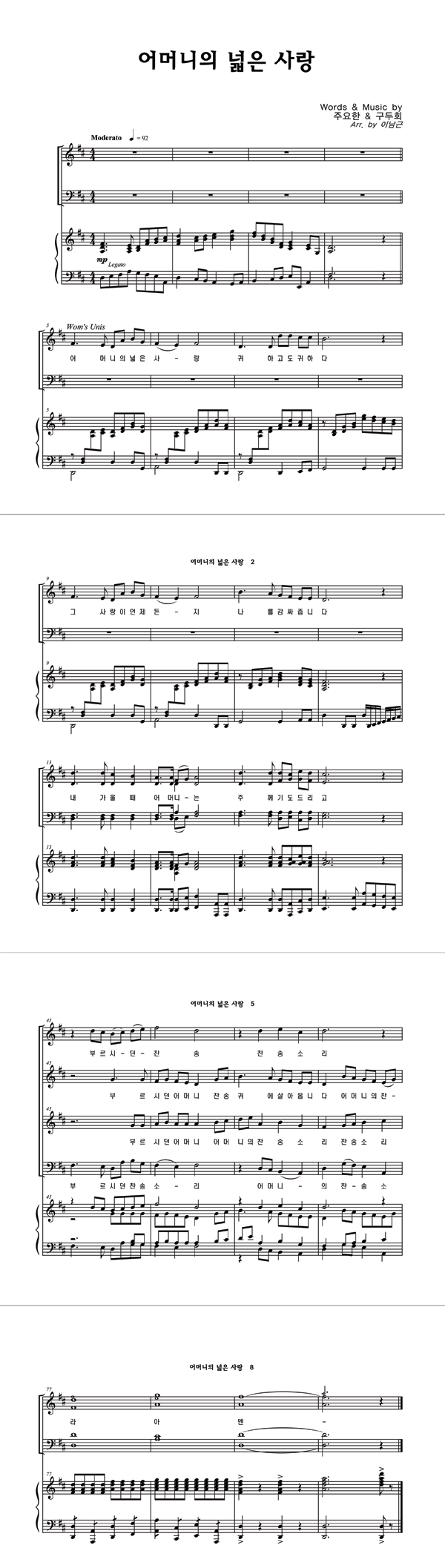 | 어머니의 넓은 사랑 | 성가 4부 + 피아노 반주 |