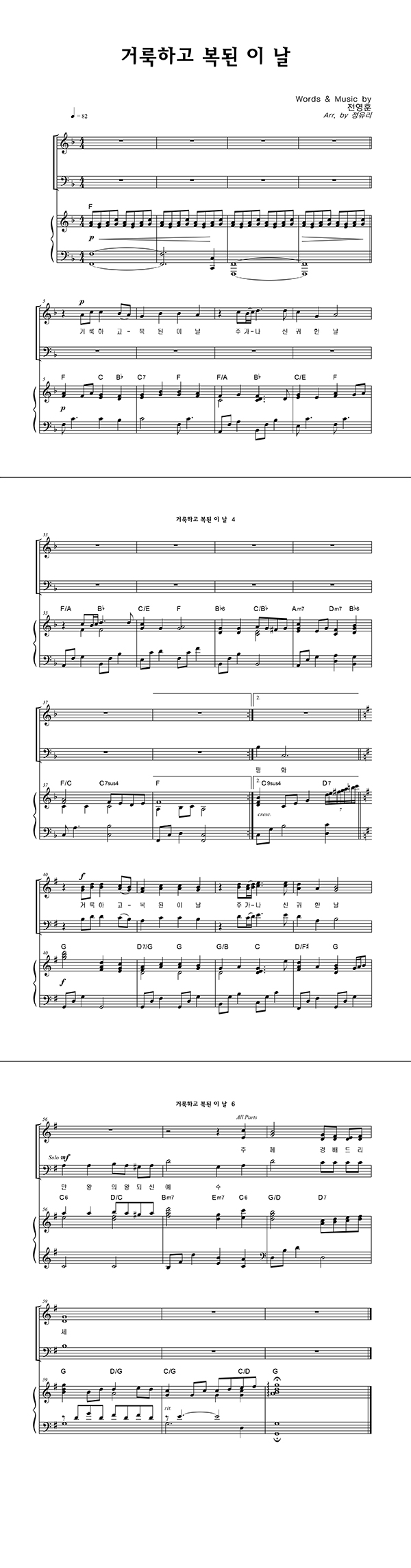 | 거룩하고 복된 이 날 | 성가 2부 + 피아노 반주 |