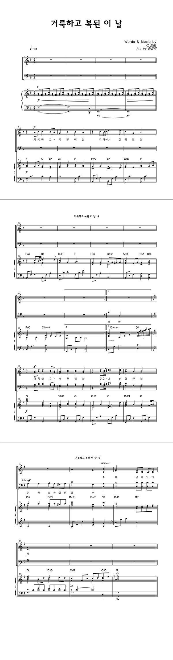 | 거룩하고 복된 이 날 | 성가 3부 + 피아노 반주 |