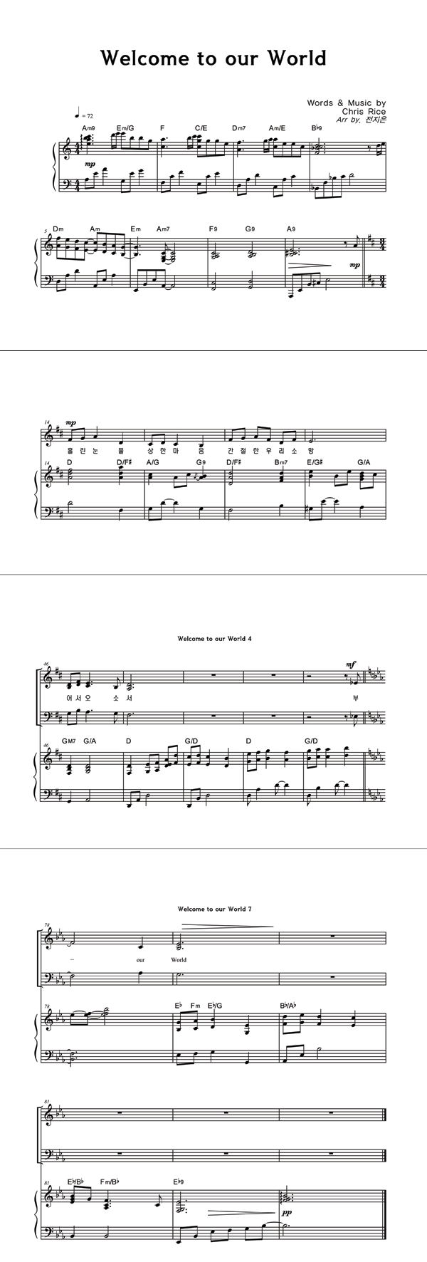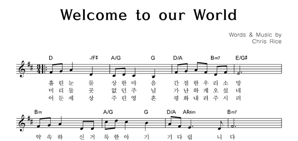 | Welcome to our world | 성가 4부 + 피아노 반주 |