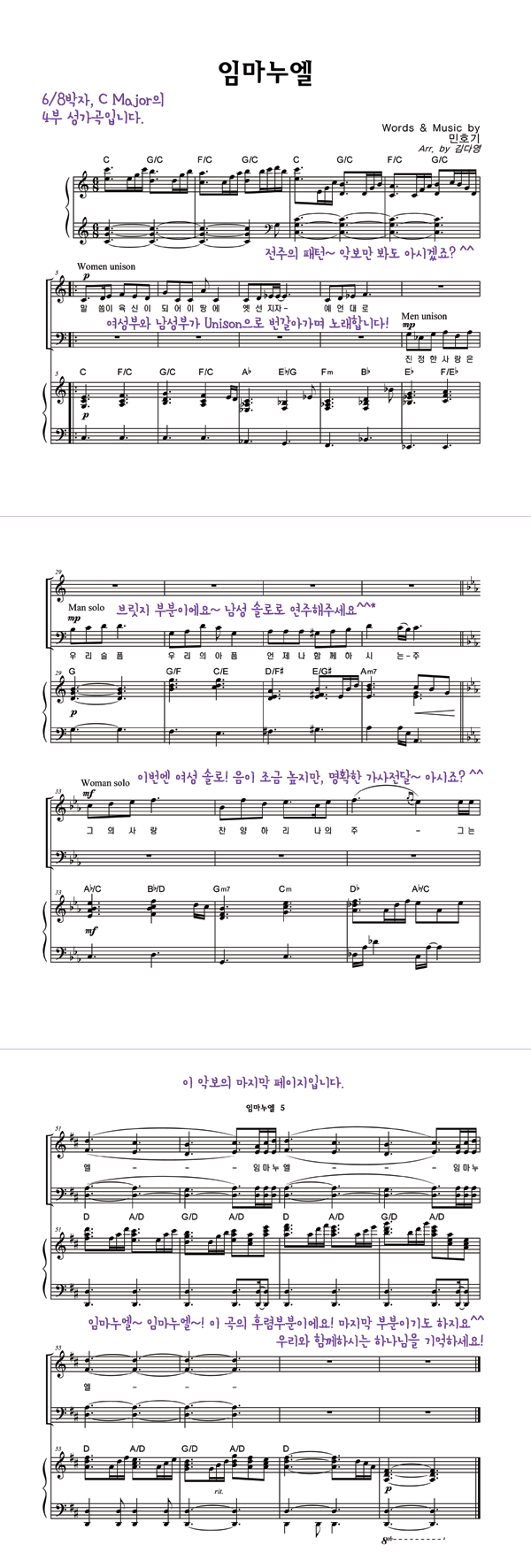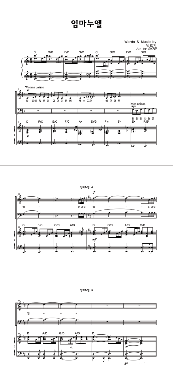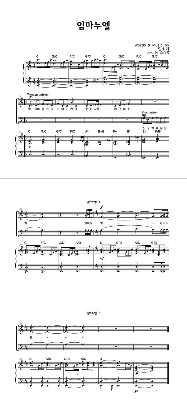 | 임마누엘 | 성가 4부 + 피아노 반주 |