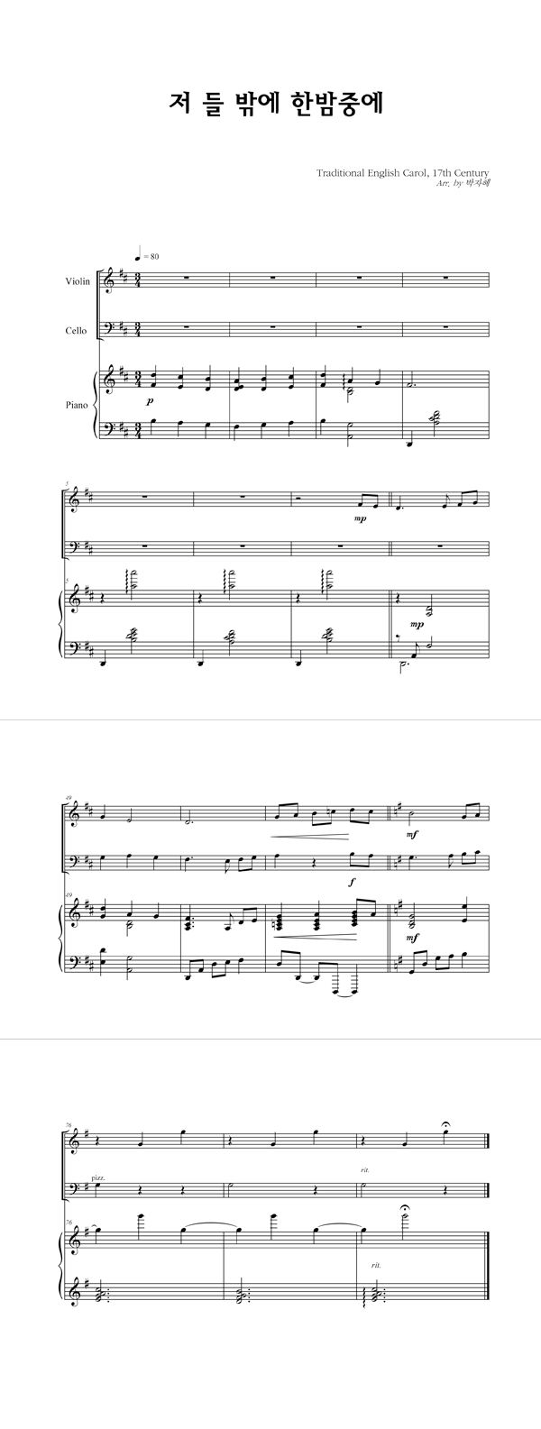 '저 들 밖에 한밤중에' 의 다른 악보형식