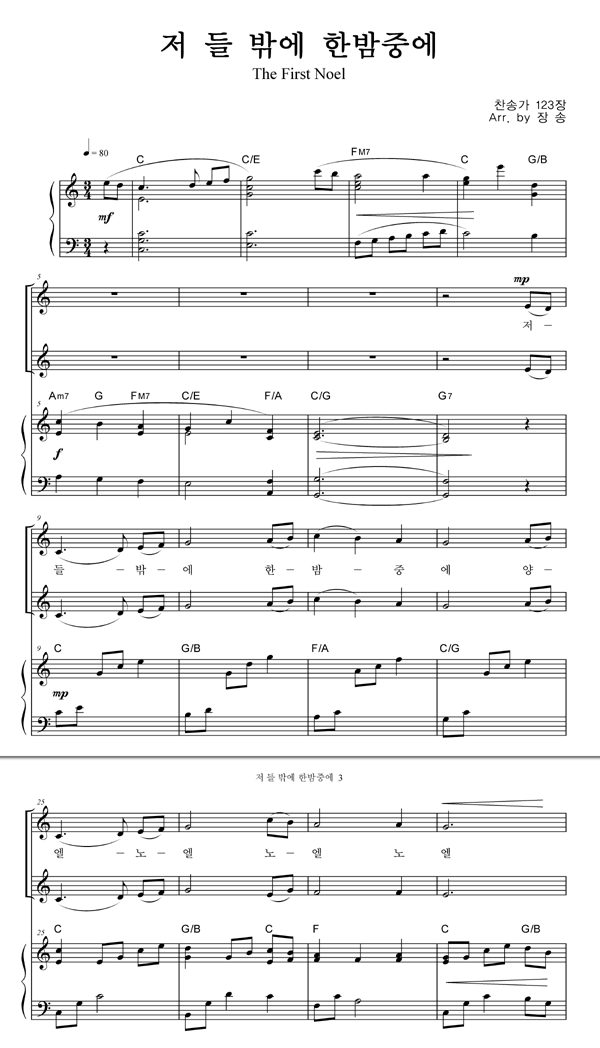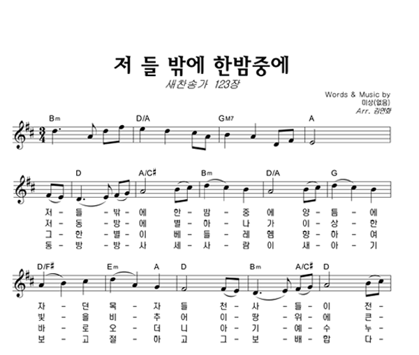 | 저 들 밖에 한밤중에 | 성가 3부 + 피아노 반주 |